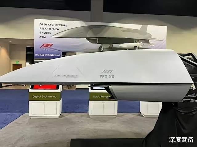 而YFQ44则由安杜里尔公司研发,其机长6.1米,翼展5.18米,最大起飞重量2.27吨,采用正常式布局,单垂尾,有一对平尾,固定式进气道位于机腹。动力为一台推力1.81吨的小型涡扇发动机,飞行速度0.95马赫,瞬时过载9个G,持续过载4.5个G。
