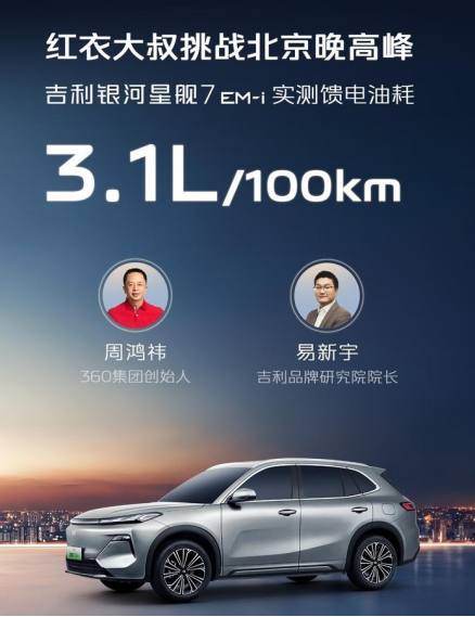 4月14日,周鸿祎驾驶吉利银河星舰 7 EM-i 完成北京晚高峰油耗挑战,实测油耗低至3.1L,紧接着红衣大叔又体验了主驾 14 点背臀按摩座椅和 16 扬 Flyme Sound 无界之声音响,直言:“这座椅像老师傅的手法。”