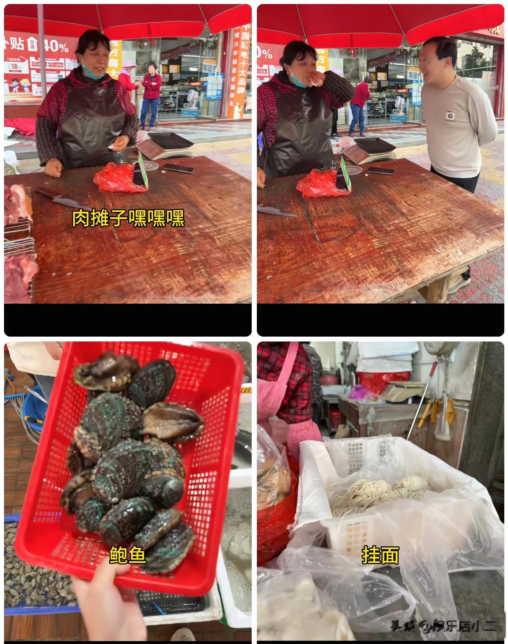 他们去姑姑的摊位买的猪肉,还去买的鲍鱼、春卷,当然还少不了要给小寿星做一碗长寿面。