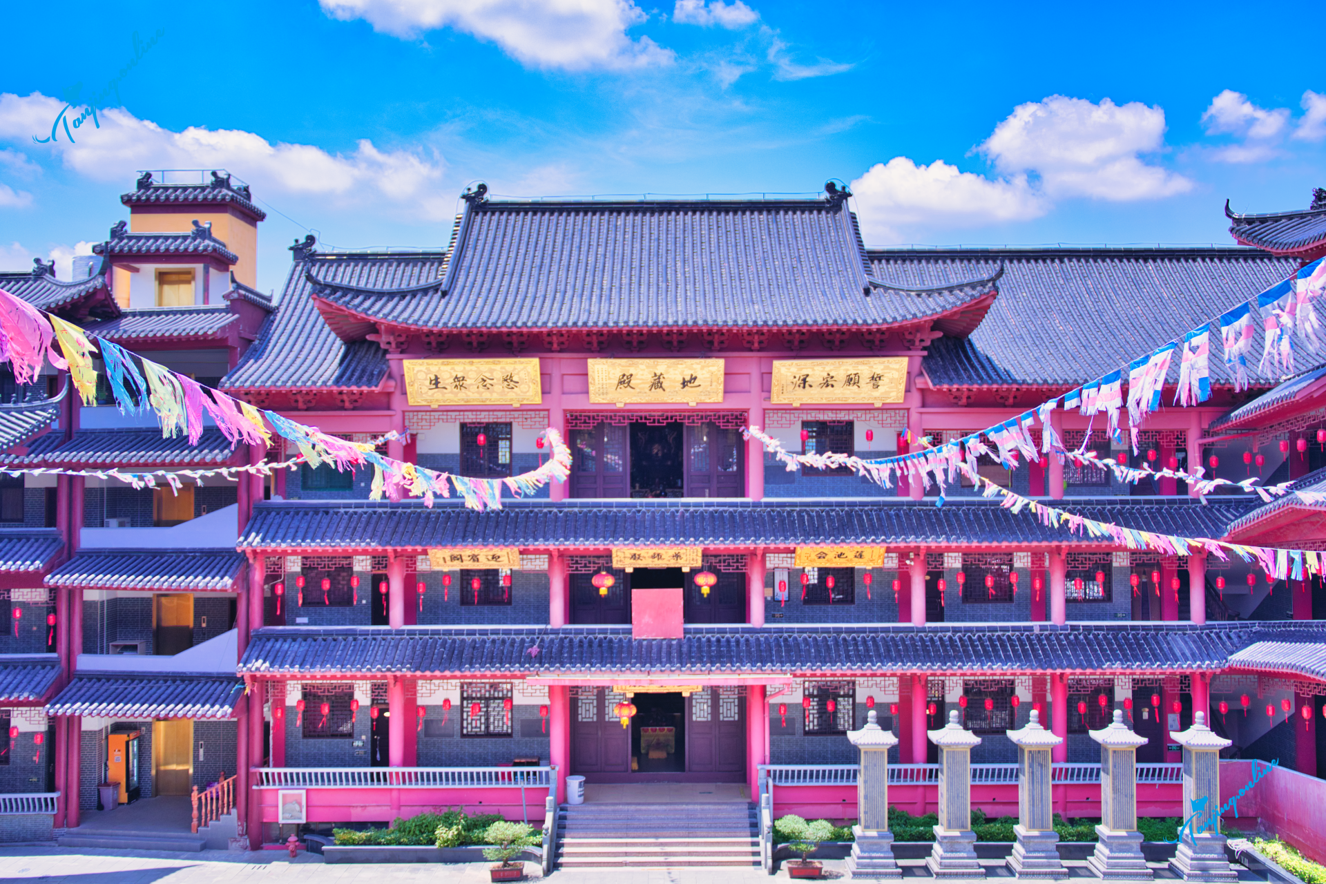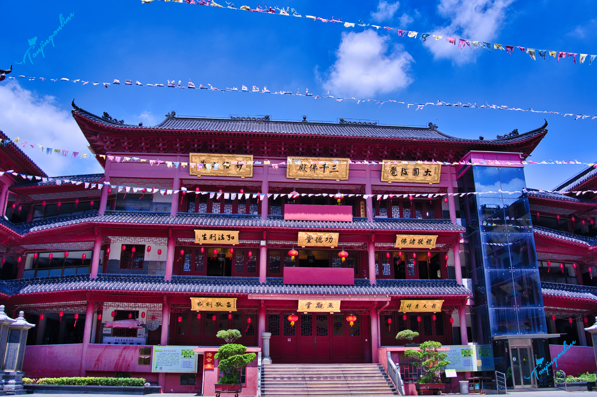 第三进:三层功德堂(设无障碍电梯,墙悬千余祈福牌匾)。