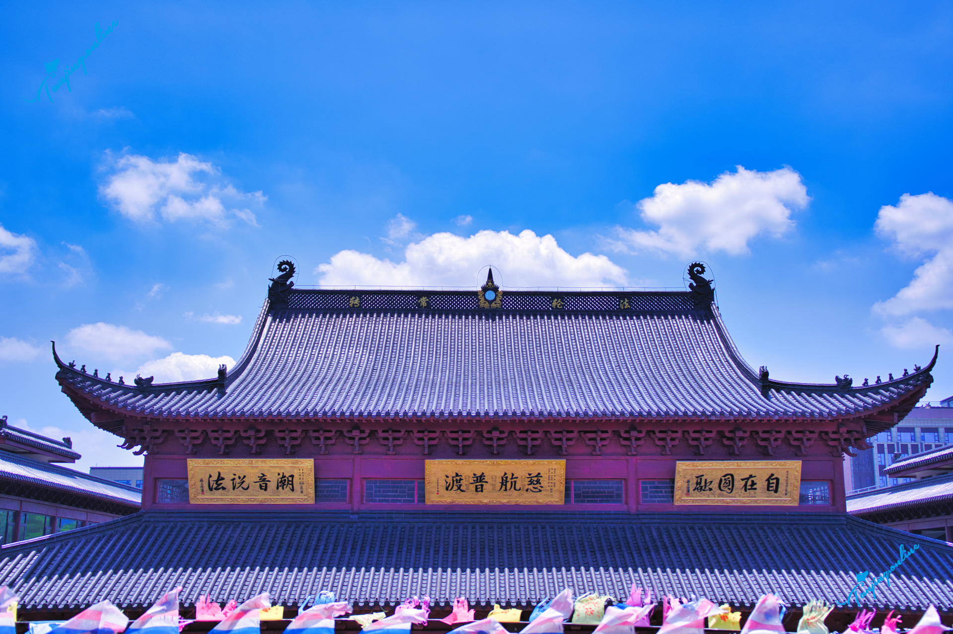 第一进:山门 → 如意桥(跨放生池,锦鲤成群) → 天王殿(供奉弥勒菩萨与韦陀护法)