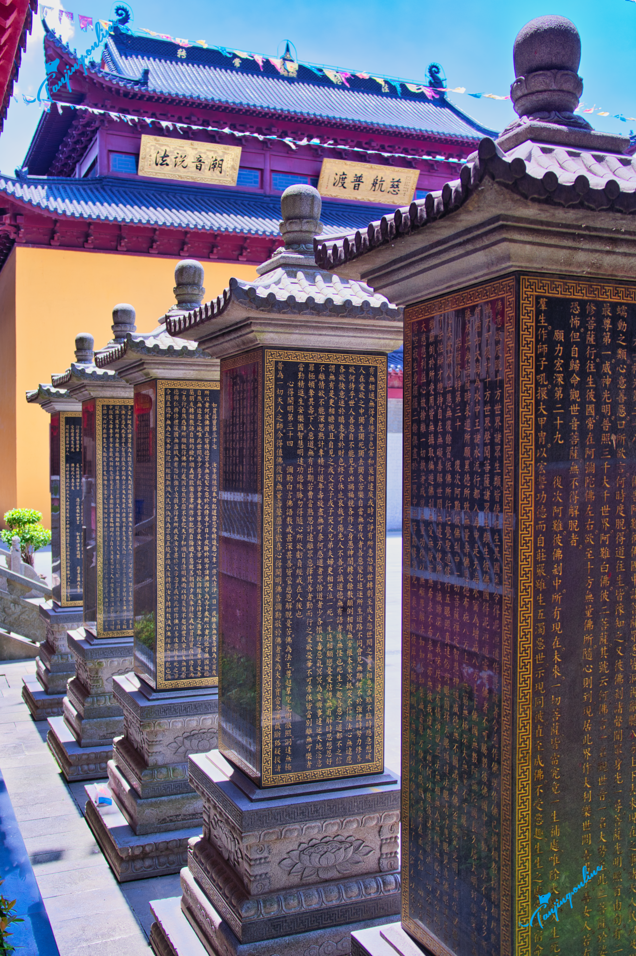 东侧:圆通殿(观音菩萨三十二化身)、财神殿