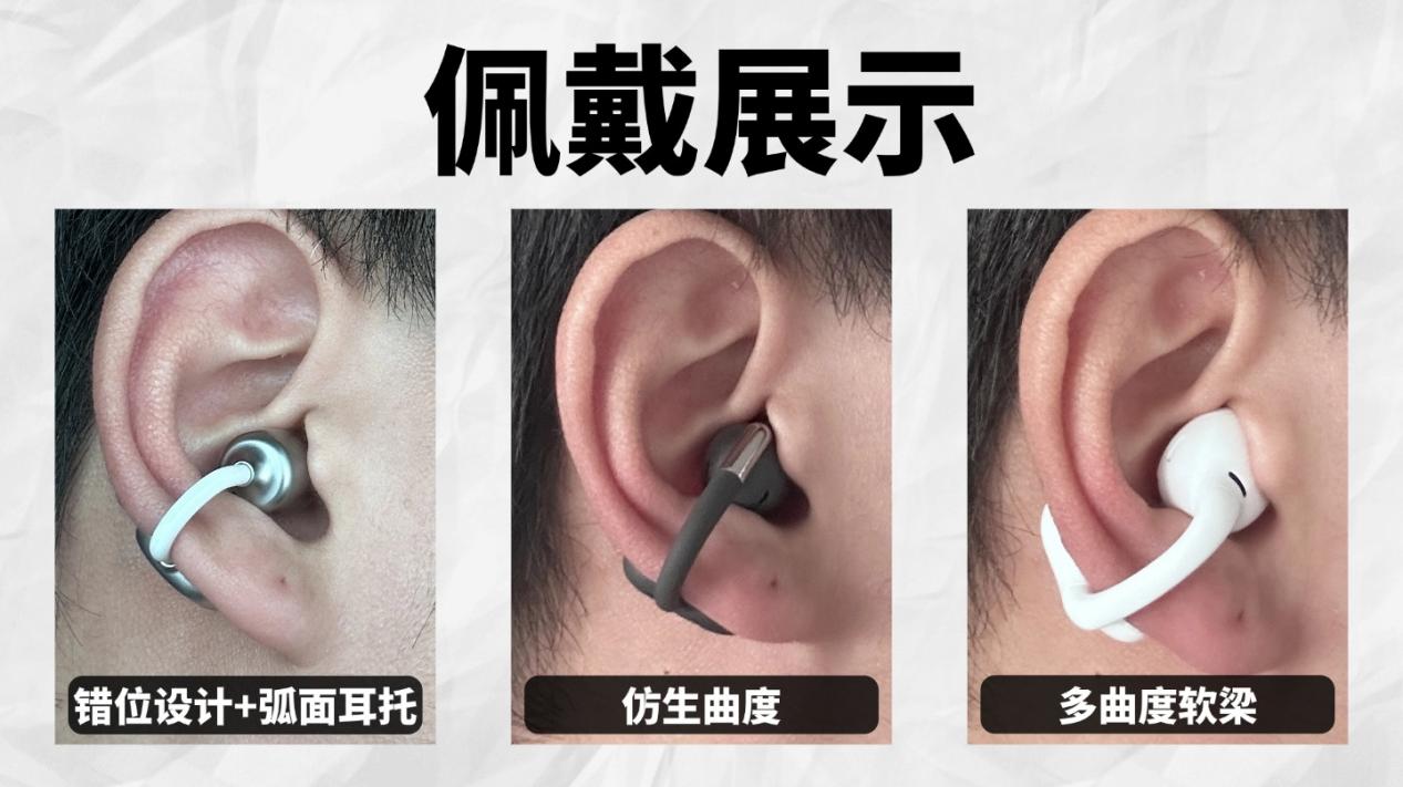 虹觅Clip Pro:这款虹觅Clip Pro在佩戴设计上很特别,它前高后低的采用2.5mm错位设计,上耳后呈现前高后低的状态,能更好契合耳形,让佩戴更稳固;同时电池仓采用∠12弧面耳托设计,能更好的贴合耳背提升舒适度。而且单耳仅重4.5g,长时间佩戴也不夹耳。