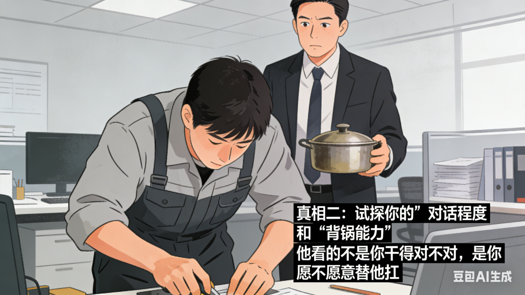 他看的不是你干得对不对,是你愿不愿意替他扛。