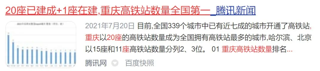 前段时间腾讯发布了一则新闻,显示目前重庆已经投入使用的高铁站有20座,居全国第一,另有一座正在修建。