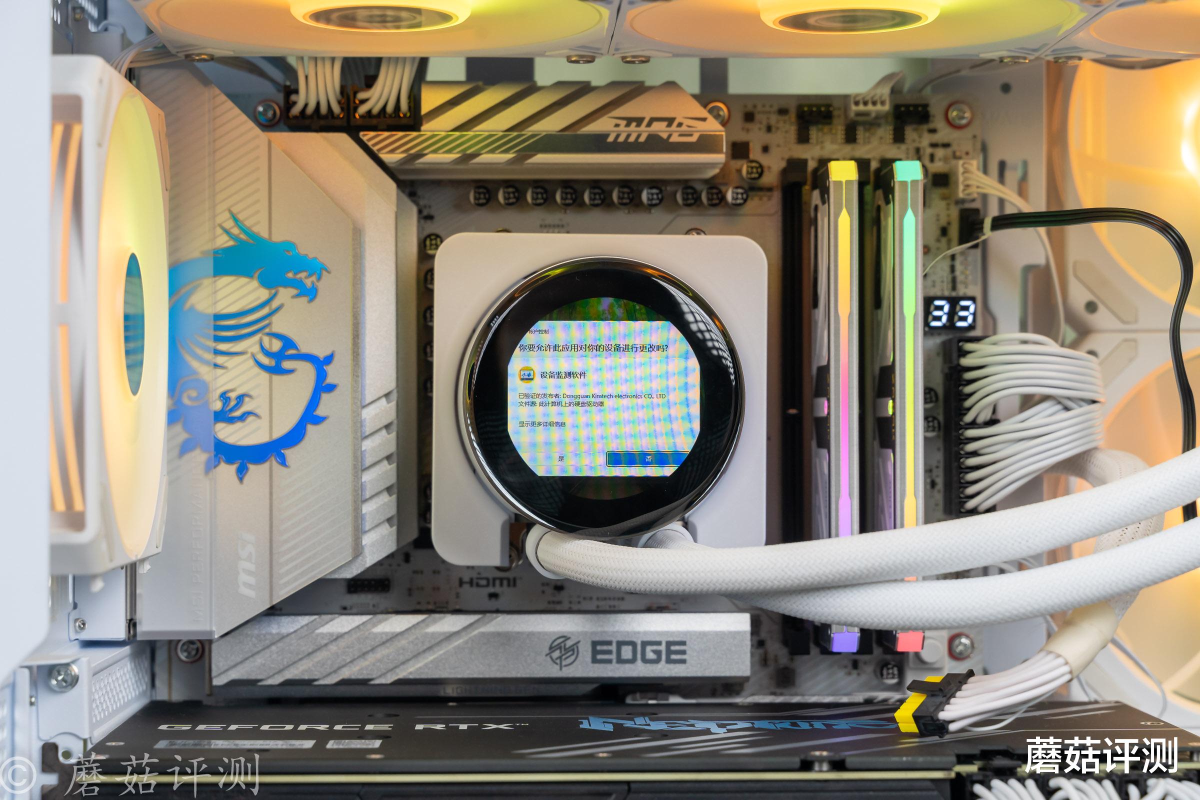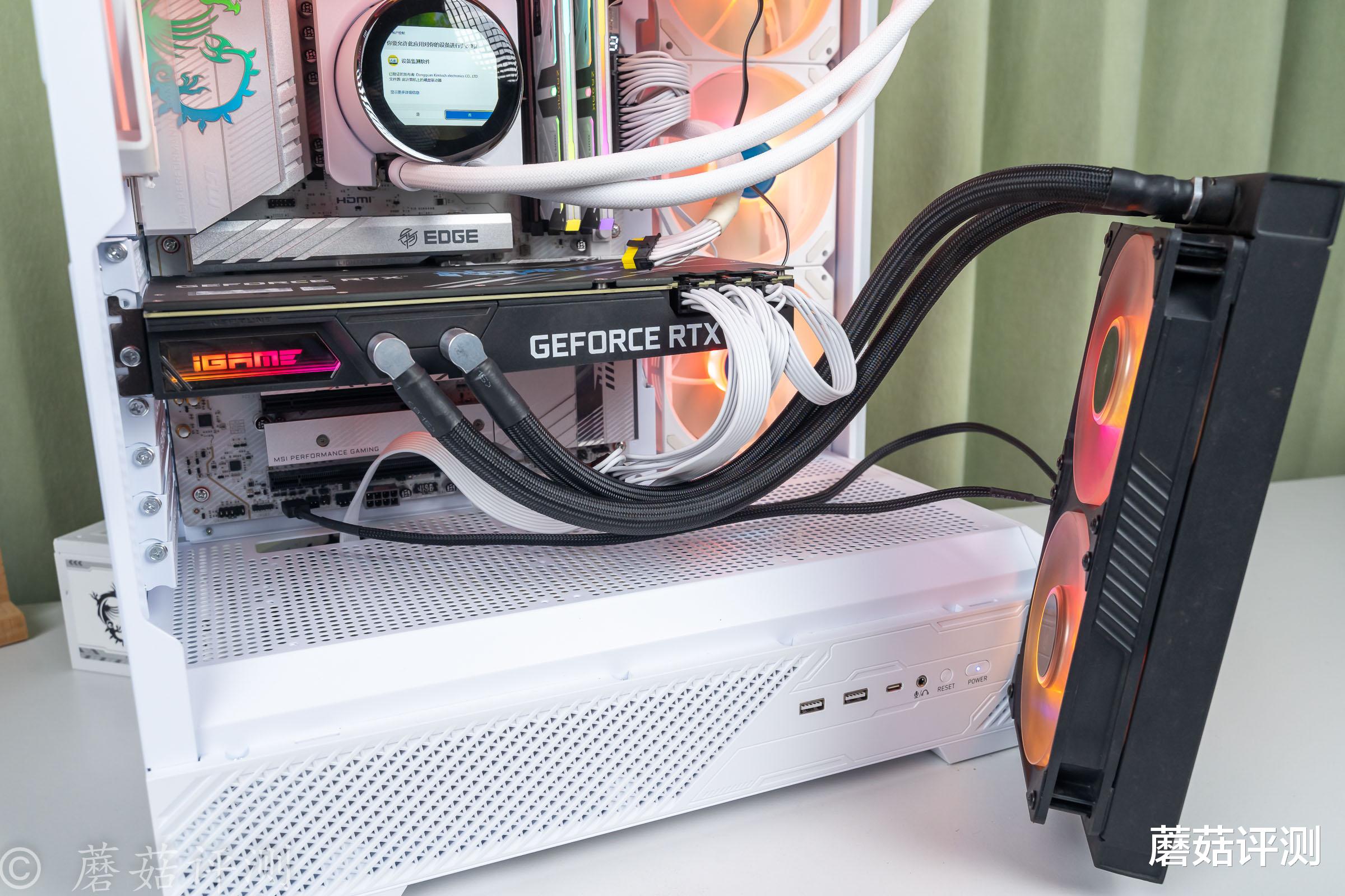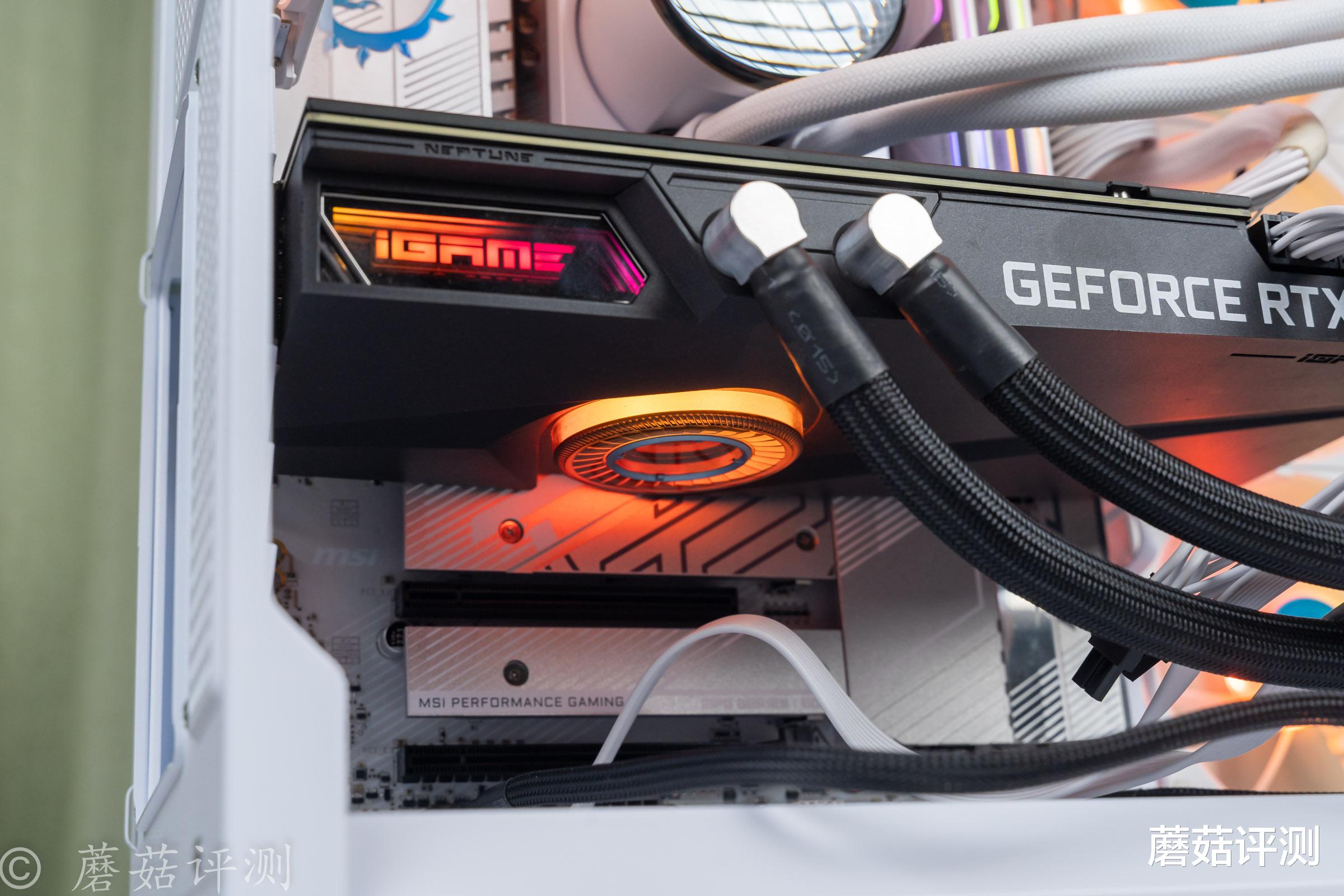 最后再多聊一句,蘑菇之前没用过水冷卡,这次体验之后发现真不错。即使是50%的冷排风扇转速,日常玩游戏的噪音、温度表现也要明显低于很多风冷卡。只不过,其对于机箱的要求比较高,不仅要有足够的水冷排安装位置,而且其特殊的越肩设计,再加上水冷管,需要的机箱内部横向空间十分充足。普通机箱肯定是别想了,能支持竖装显卡的机箱可以尝试下。
