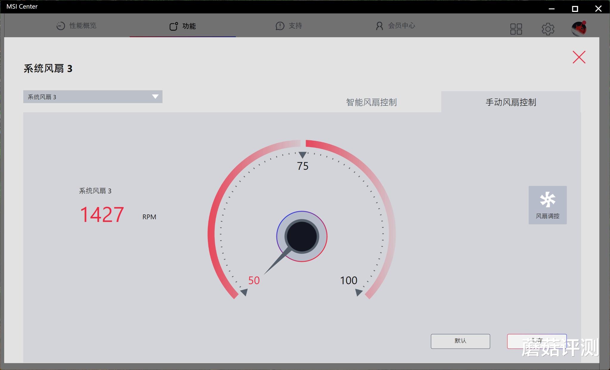 ▼冷排风扇的转速设置在50%,这个档位几乎听不到风扇转动的声音,75%的时候可以听到风扇声音。