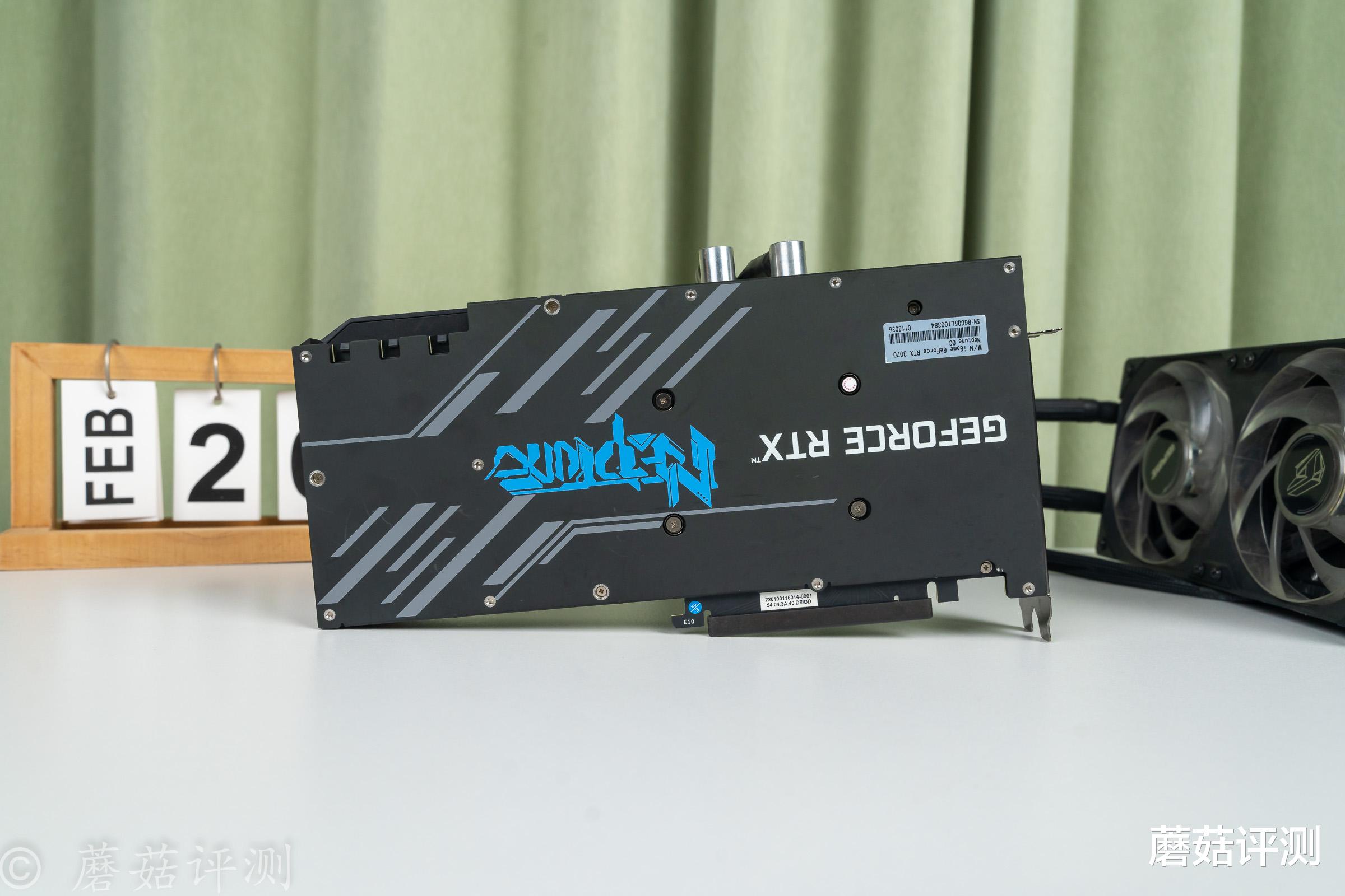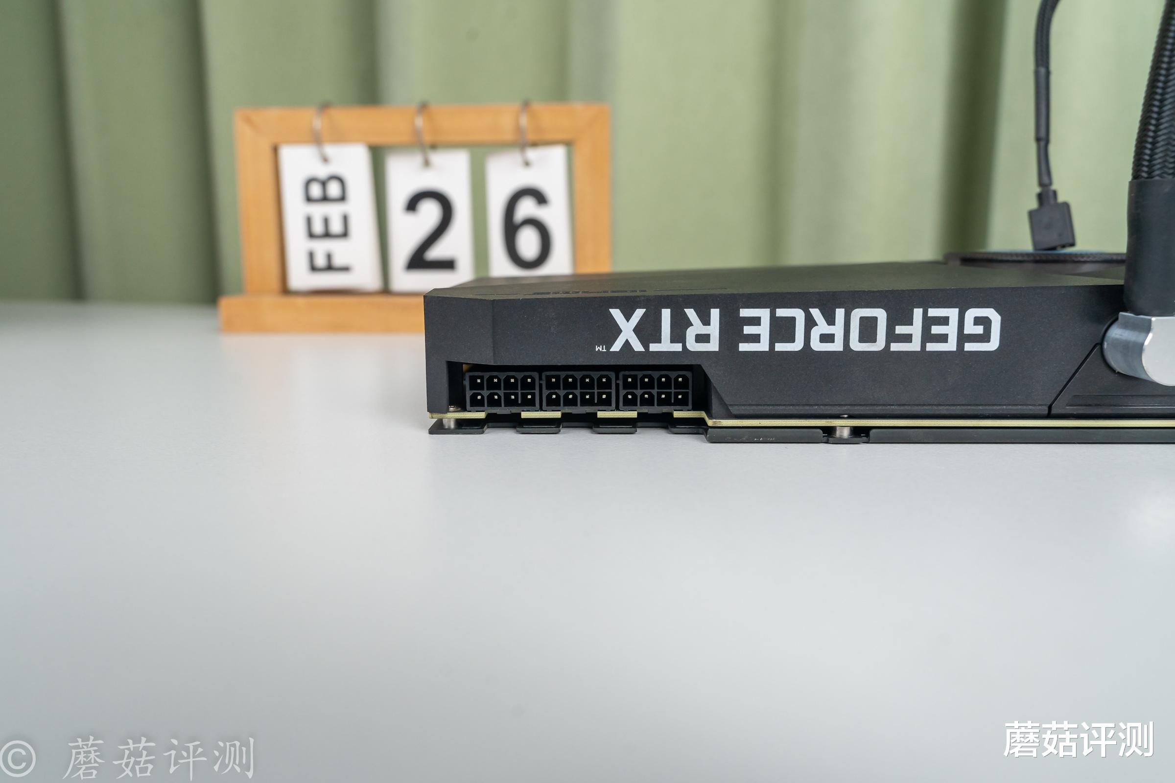 ▼显卡主体外观很简洁,核心水冷头部分有特殊的造型,支持ARGB灯效。显卡的整体高度比较高一些,越肩越的比较厉害,再加上水冷管,对机箱的宽度要求比较高。