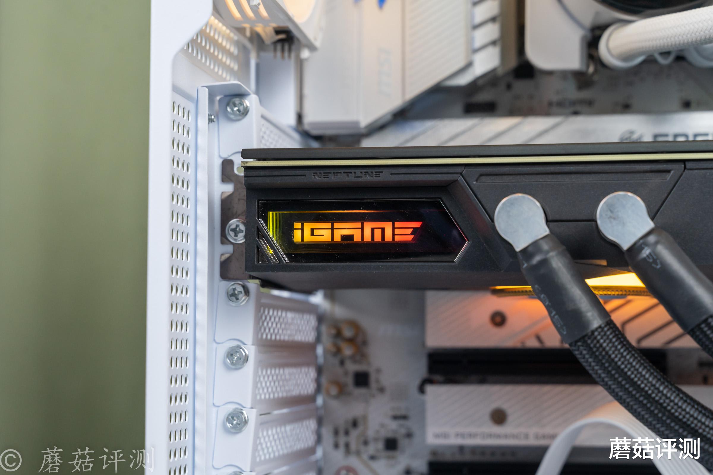 ▼显卡的水冷管旁边还有一处灯效设计,内部可见七彩虹的iGAME的LOGO。