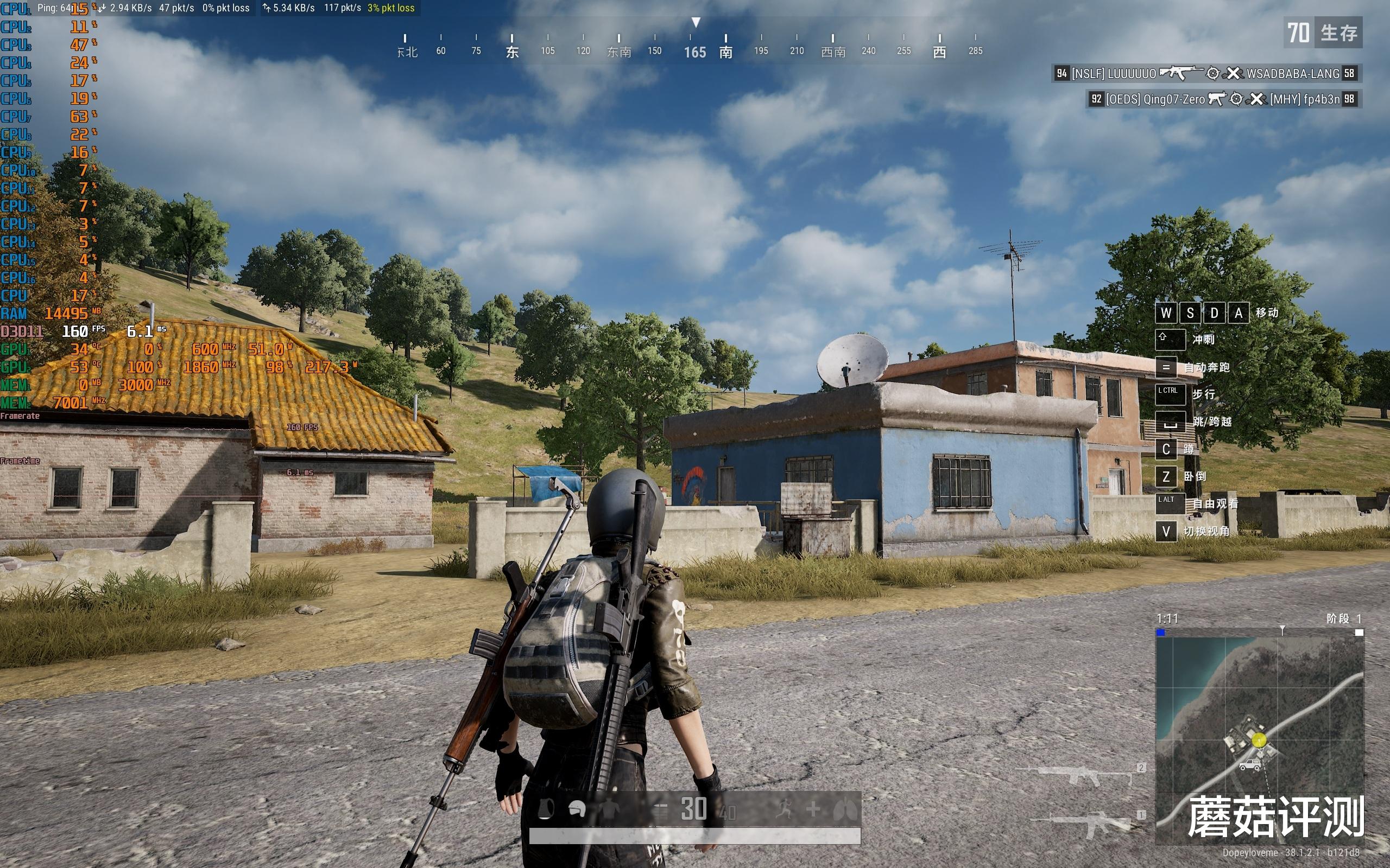 ▼绝地求生PUBG,2K分辨率,全高画质,室外游戏帧数在160帧左右,显卡占用100%,功耗217W左右,温度53℃。