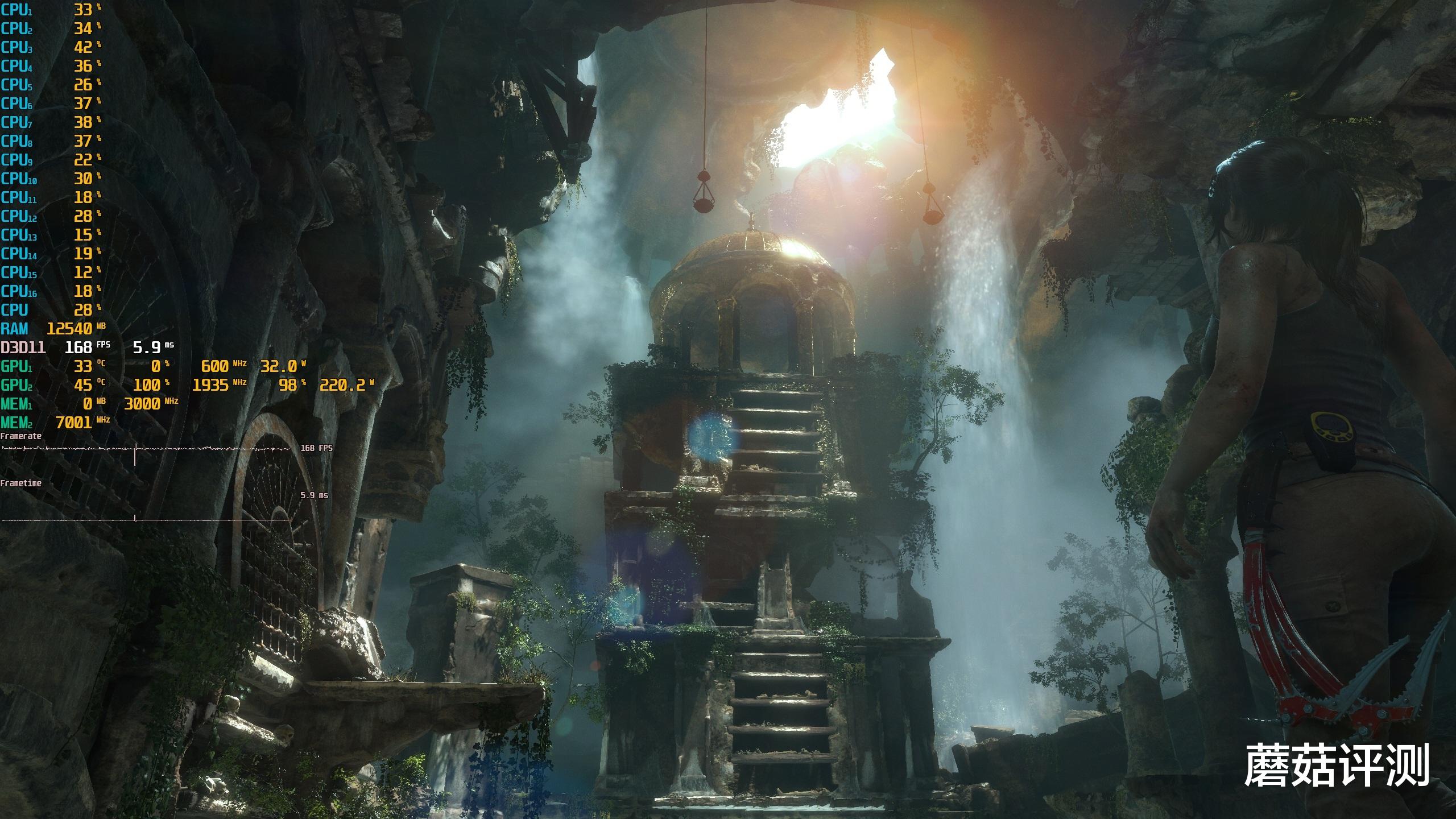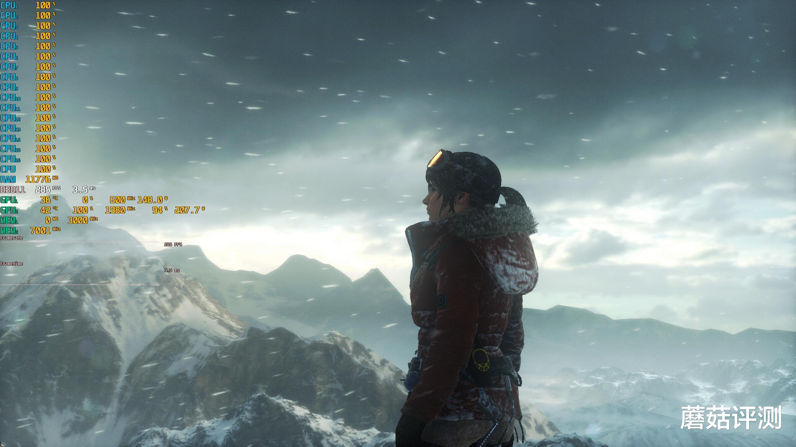▼古墓丽影,2K分辨率,全高画质,第一个测试场景,游戏帧数在285帧左右,显卡占用100%。