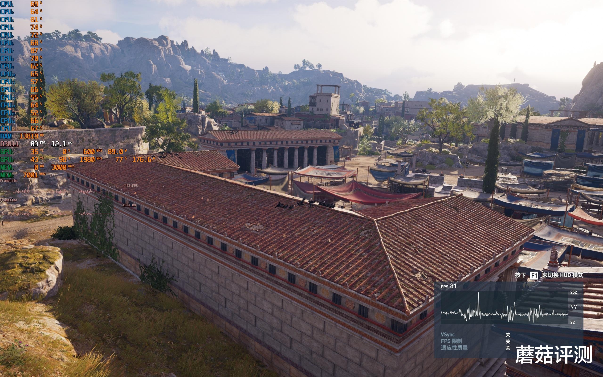 ▼室外整体的游戏帧数在83帧左右,显卡占用98%。
