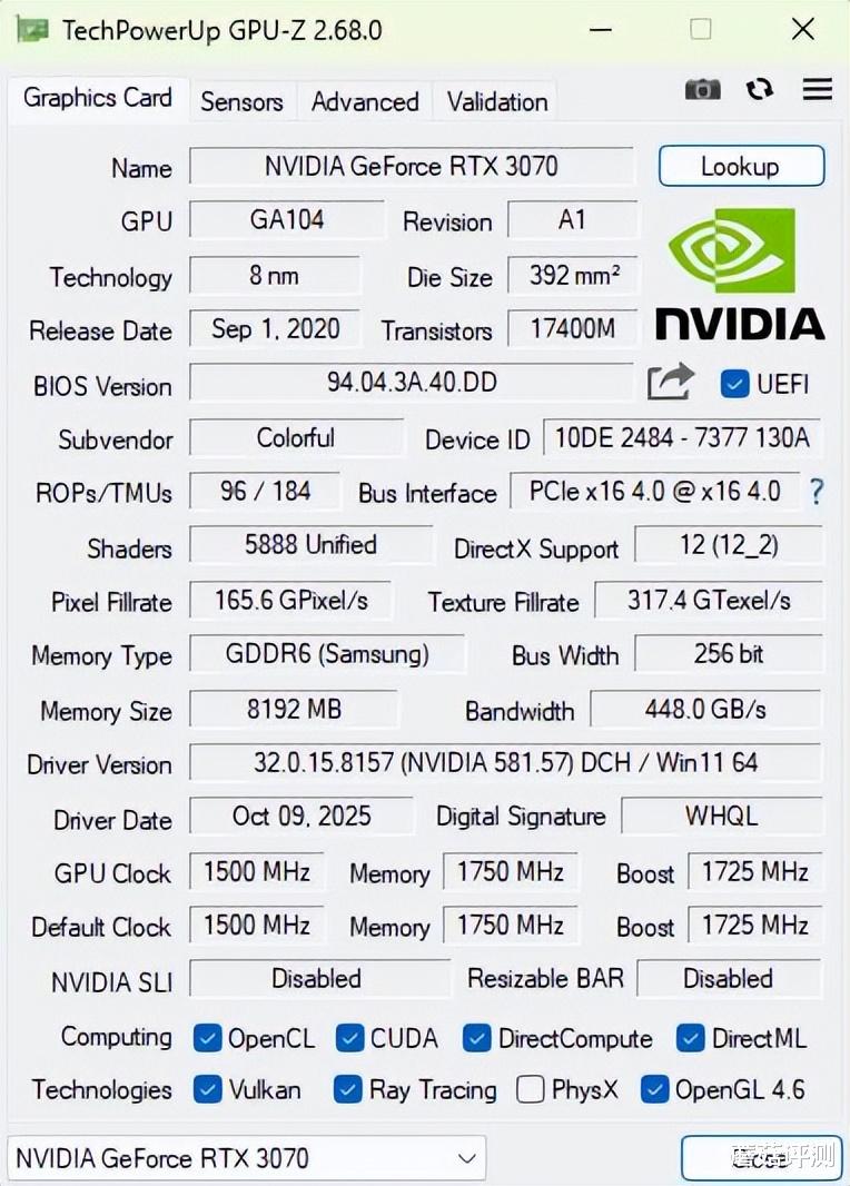 而且RTX 3070的性能表现也不错,在2K分辨率下,很多游戏都能跑一跑了。和全新的显卡比,应该是要比RTX 5060显卡要强一些的,前提是不能开拼好帧,毕竟老卡不支持新技术。