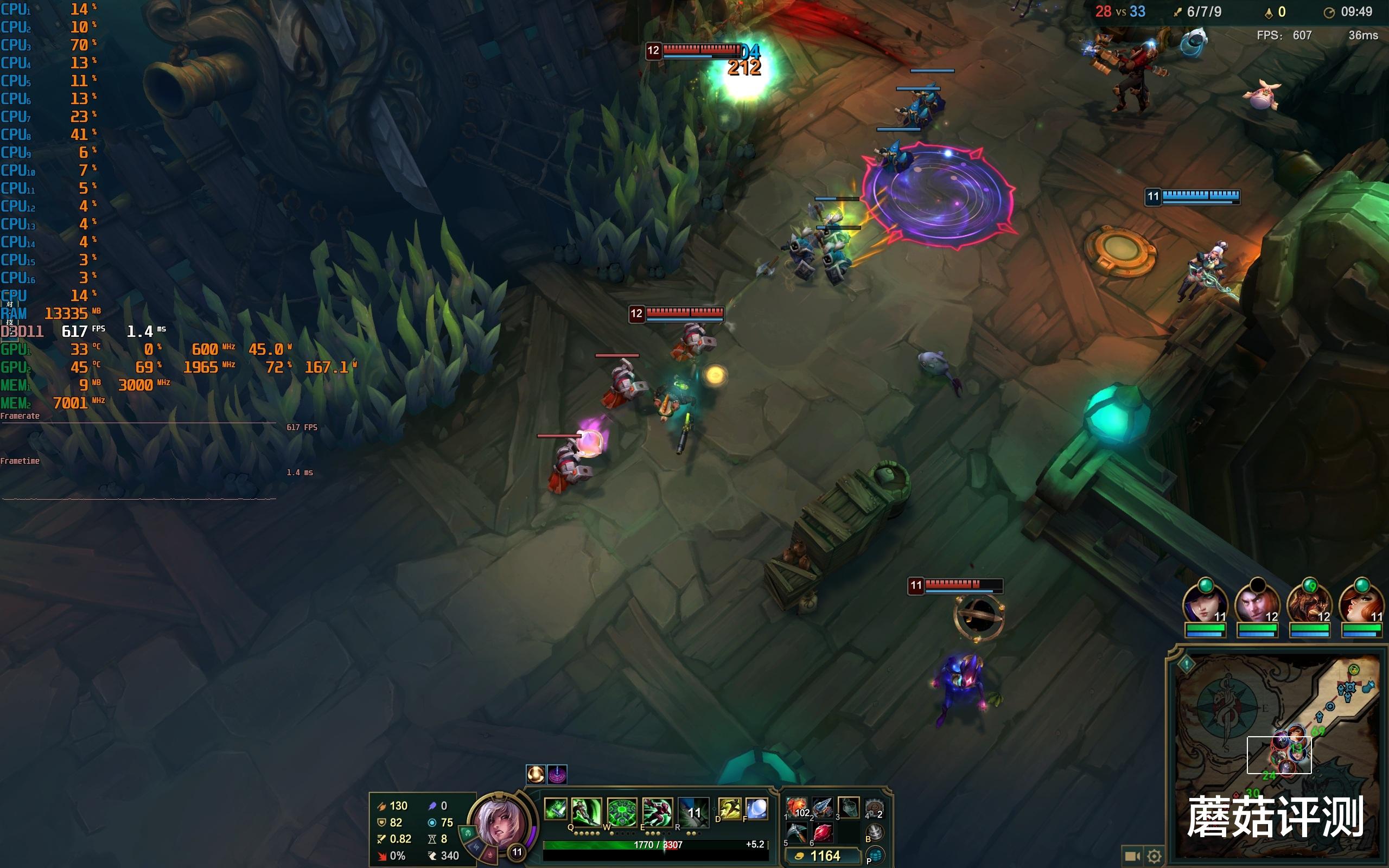 ▼日常团战情况,游戏帧数也能保持在617帧左右,非常流畅。