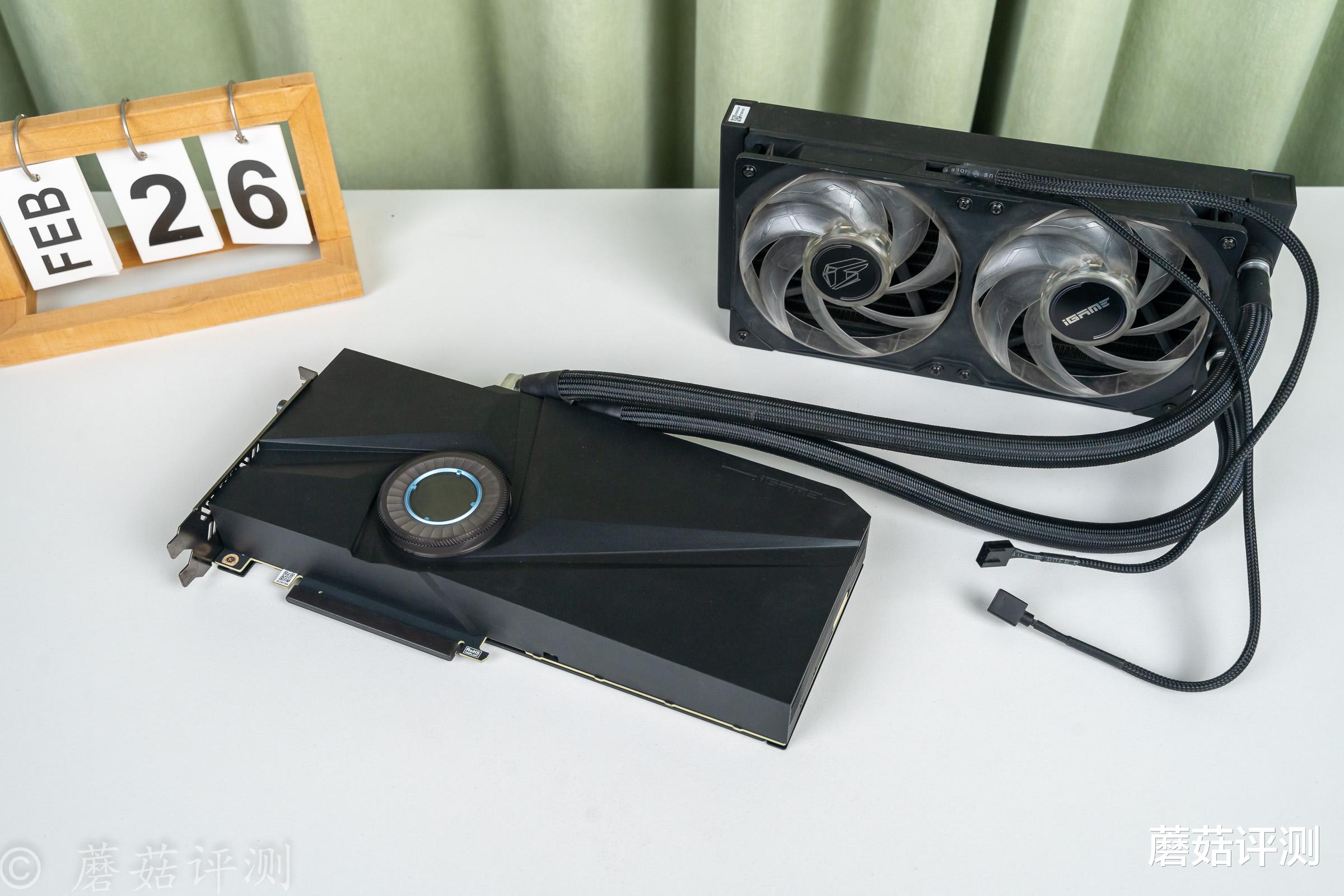 ▼显卡的体积还是蛮大的,除了显卡本体之外,还有水冷管以及一个240的水冷排。