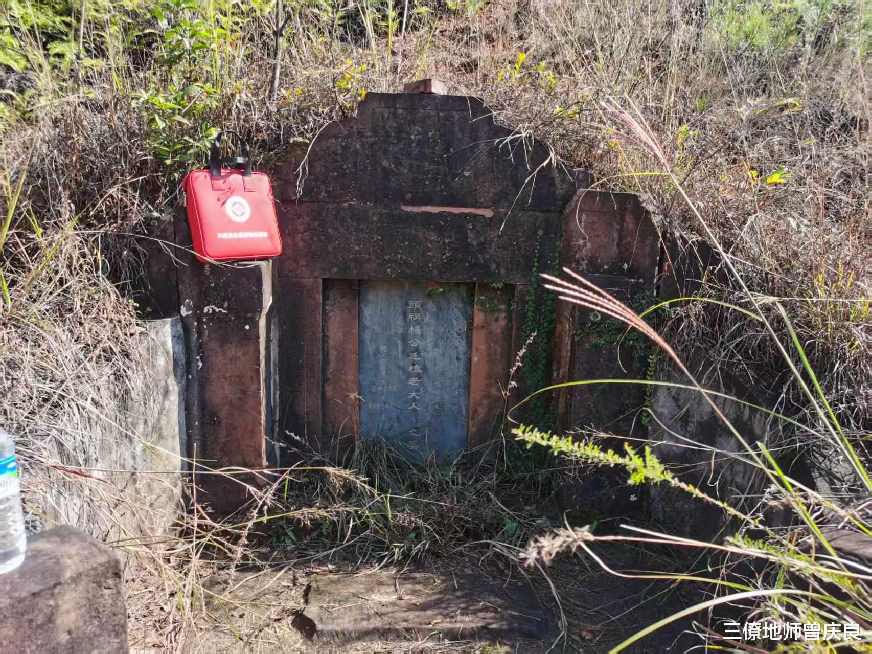 兴国县城周边多是丹霞地貌,形成很多山体石头来龙或石山独立;此祖地正前方不到一公里就是一座红石头峰,恰似古代官员戴顶的官帽,矗立在墓穴的中明堂内,就像有人特意摆放在此,感叹大自然鬼斧神工。前官后鬼,明堂正前方起的峰堪舆学中称之为官星山,穴后拖身延长的称之为鬼星,墓宅若是正对这种官星山称之为特朝,象征着科甲贵气。这个官帽山我们站在穴场一目了然,这也是此地的点睛之笔,立马就提升了整体的风水格局。古籍《何知经》云:“何知人家贵了贵,文笔尖峰当面对”,可见发贵之地皆有贵气的特征。