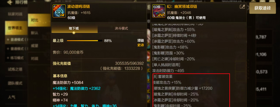 但其实能打出这样的伤害全靠一套装备,那就是60级史诗异界套,升级后的异界套8件可以带来17200的减防,三个角色同时配搭则是51600,加上还有45%的技攻,这些都可以叠加。还没完,在配合减防刀和绿肩,把减防发挥到极致。