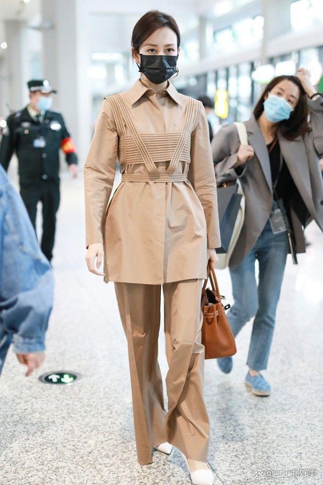 宽松裤腿对双腿肉肉很友好,让腿看着纤细又修长。王鸥的官方身高是一米七,穿这种裤长裤子刚刚好,而且不压身高。