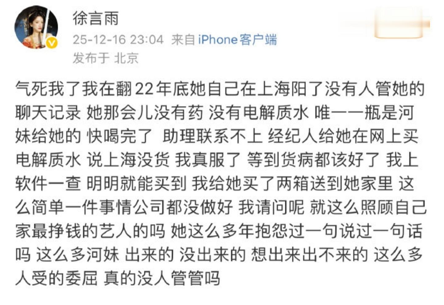 然而,在鞠婧祎的关联人口中,外界听到的是完全另一个版本的故事:她在生病时连一瓶电解质水都要自己想办法,甚至涉及到公司对基层女员工的压榨。
