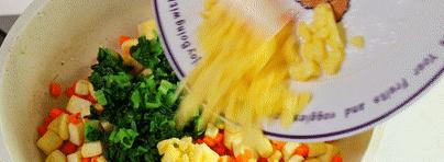 一开始只是打一个鸡蛋,搅一搅,最后炒嫩一点蛋碎。