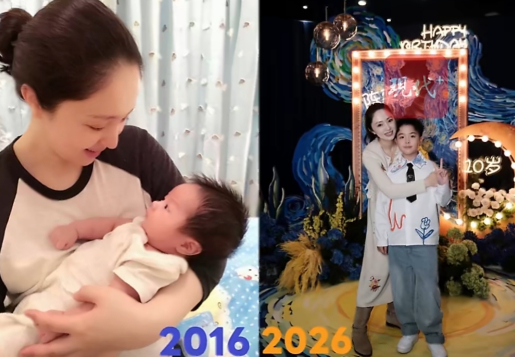 照片里,刚出生的朵朵皱着小脸,被董璇小心翼翼抱在怀里。谁能想到,当年那个软乎乎的小婴儿,如今已经长成了翩翩少年?