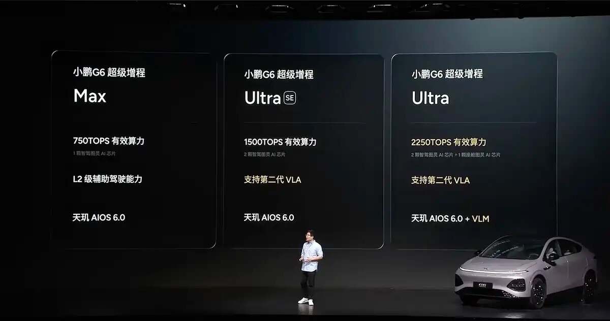 当然,既然是一台小鹏,这智能自然也是卖点。尽管车辆只有一个配置规格,但智能却又分为Max、Ultra SE、Ultra三种方案,分别对应1颗/2颗/3颗图灵AI芯片,后两者在辅助驾驶中拥有第二代VLA大模型、Ultra则会为天玑AIOS 6.0带来VLM大模型支持,简而言之,就是主流智能功能它都有,也兑现了“车位到车位”能力。