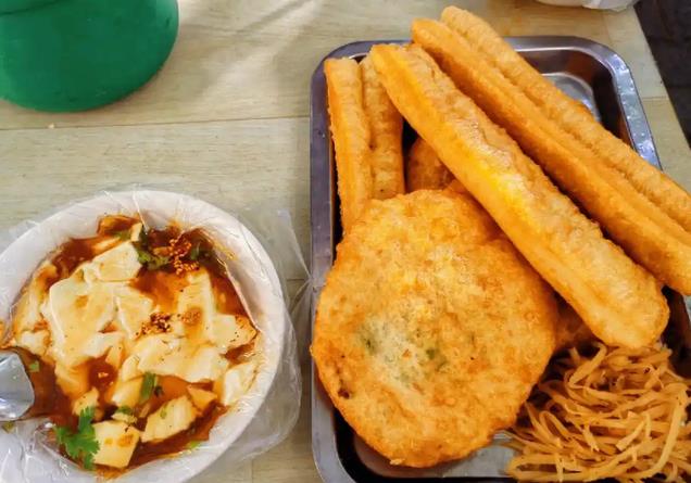 她们想坐下慢慢吃,就找了一家早餐店,按照老板的推荐买了6块五的早餐,就坐在桌子上慢慢品尝起来了。
