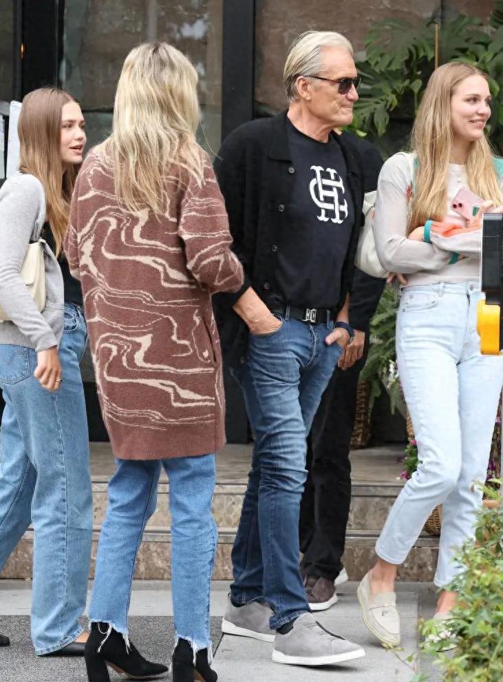 杜夫·龙格尔与现任妻子及两女儿同框当地时间3月28号傍晚,好久不见的杜夫·龙格尔突然出现在大家眼前。那天他跟家人一起在西好莱坞吃了顿轻松的晚饭,一家人看起来特别温馨。等这位现年67岁的硬汉从餐厅出来的时候,有三位美女陪在他身边呢。这三位里头,有他的现任妻子,还有他和前妻(她是个珠宝设计师)生的两个女儿。