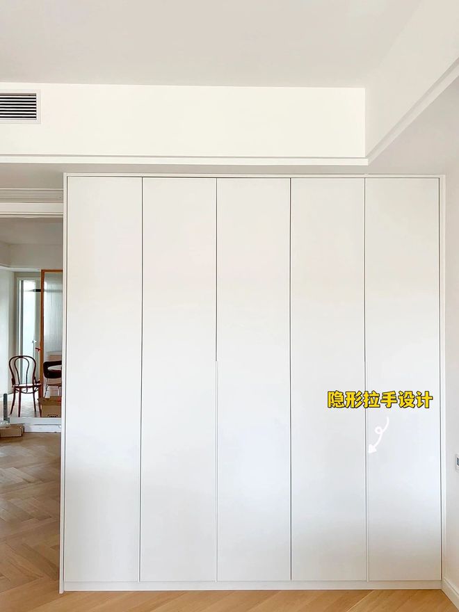 比起明装拉手,隐形拉手反而更实用,这种拉手和柜门一体成型,线条流畅。由于隐形拉手是内嵌于柜门上的,所以不用担心磕碰和积灰的问题。