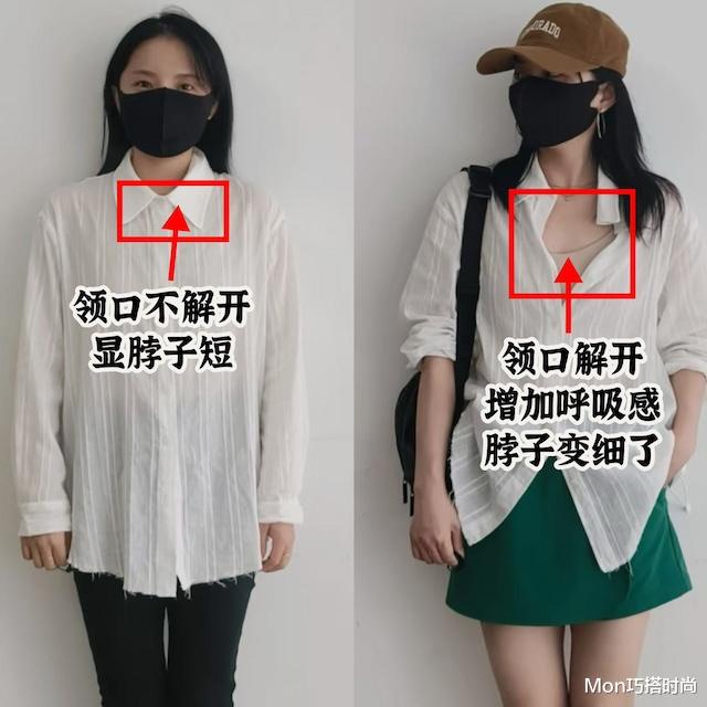而且解开领口可以拉长脖颈线条,让脸部看起来更加小巧精致,对于脖子较短的人来说,这种穿法尤为重要,它能够在视觉上起到延伸脖子的效果,使整体比例更加协调~