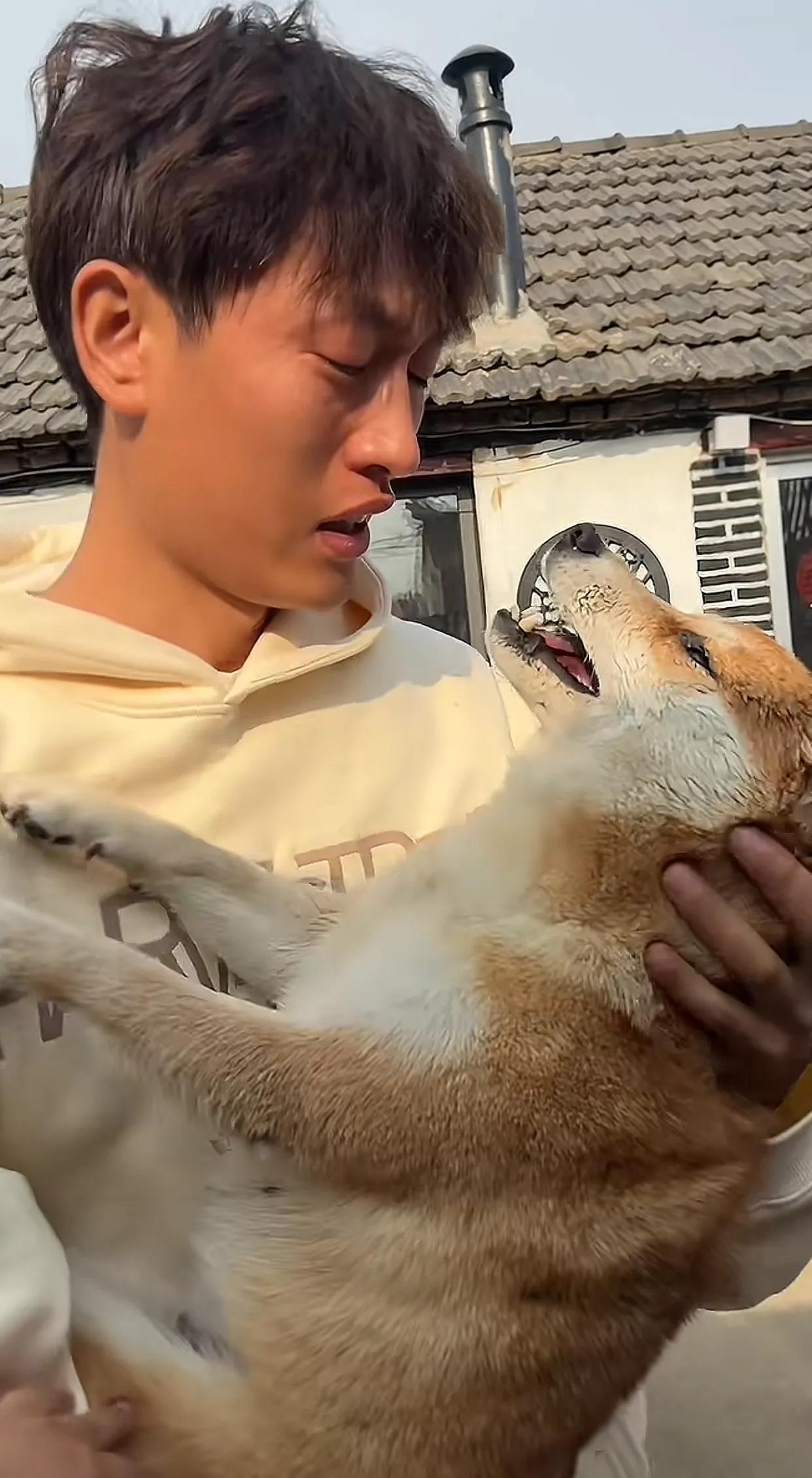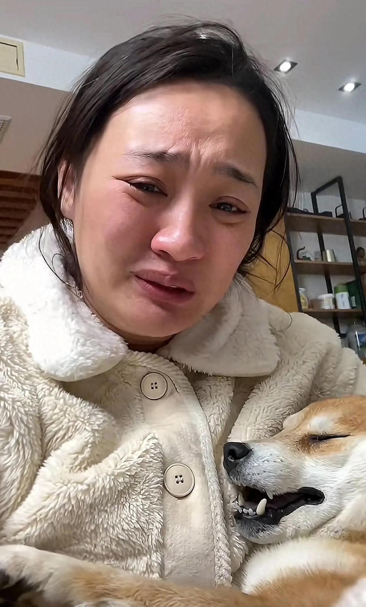 从主人抱着离世的佩奇落泪的模样里,能清楚看到那种失去至亲的崩溃与心痛——眉头紧锁、泪水直流,把佩奇紧紧搂在怀里,仿佛这样就能留住陪伴了六年的“家人”。