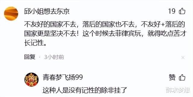 不友好的国家不去,落后的国家也不去,不友好+落后的国家更是坚决不去!这个时候去菲律宾玩,就得吃点苦才长记性。