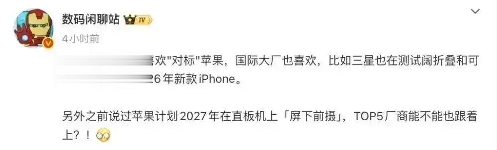 此前,同一位博主的爆料也提到过,三星测试了阔折叠和可变光圈,以应对2026年新款iPhone。