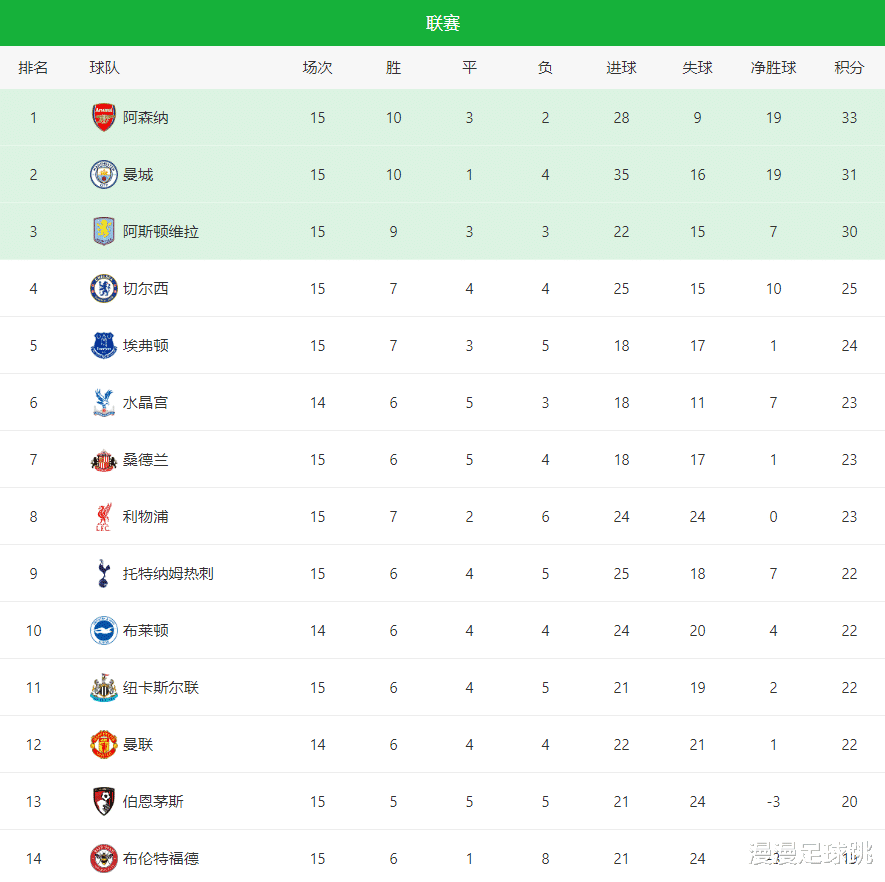 随着维拉2-1绝杀阿森纳+利物浦3-3爆冷!英超最新积分榜:曼城连胜距榜首2分