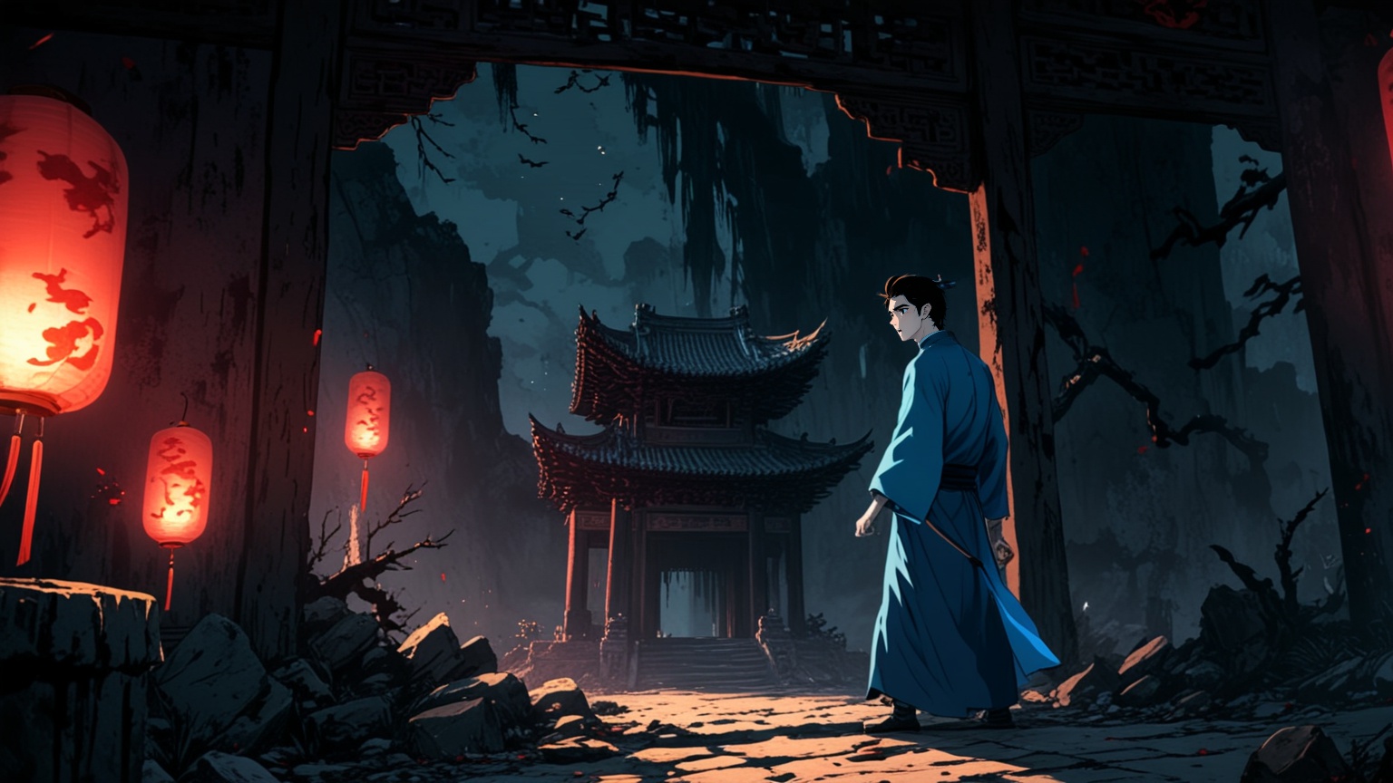 李阳的心跳陡然加快,他试图摘下眼镜,但眼镜却像是长在了他的脸上一样,怎么也摘不下来。他开始感到一阵恐慌,脚步不自觉地向后退。随着身影的靠近,李阳看清了它的样子。那是一个身着破旧黑袍的人,脸上满是烧伤的痕迹,皮肤焦黑,眼睛处是两个深深的黑洞,正流淌着暗红色的液体。