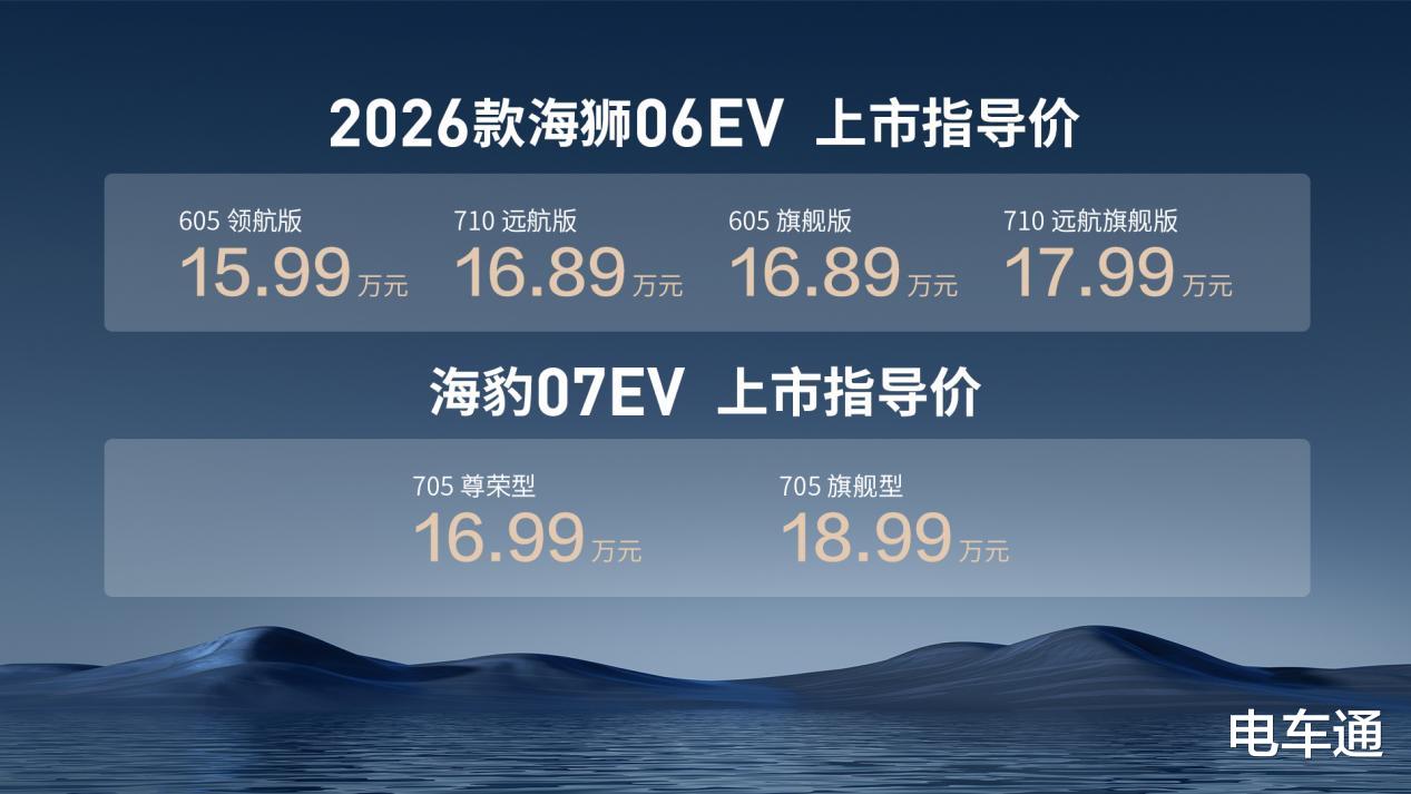 第二代刀片电池和兆瓦级闪充技术亮相的同时,2026款海狮06EV直接宣布上市即交付,价格锚在15.99万-17.99万元。没有预定周期,没有首批限量,没有敬请期待。这种打法在当下的新能源市场,反倒显得有点陌生。