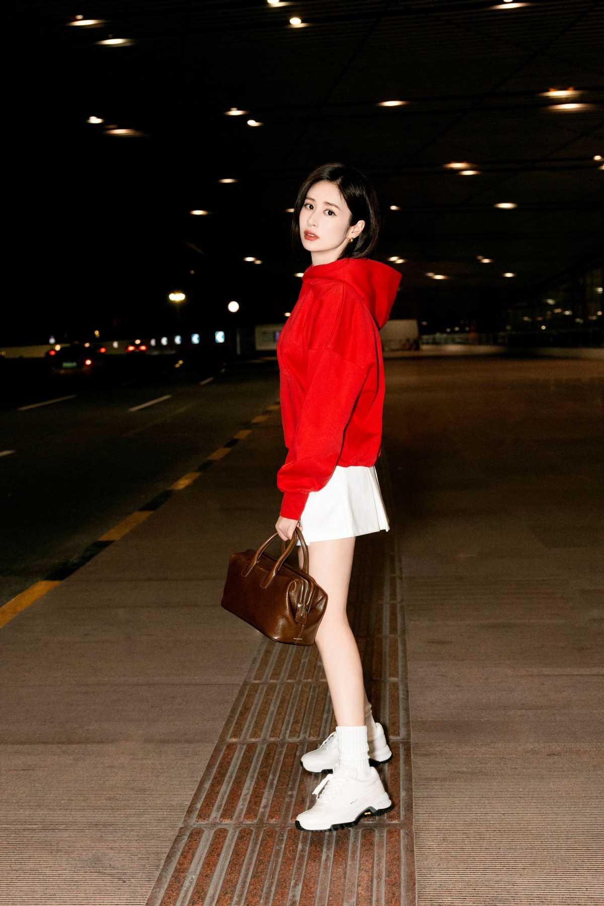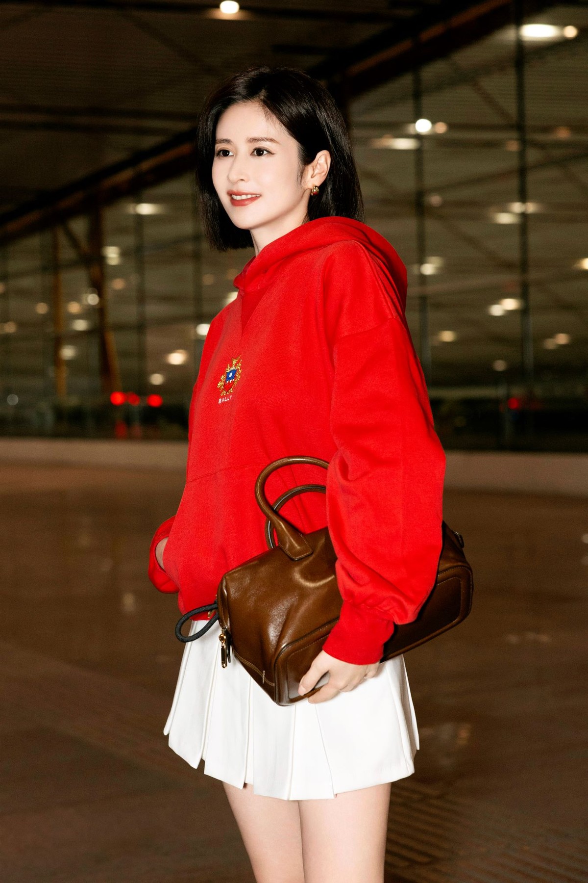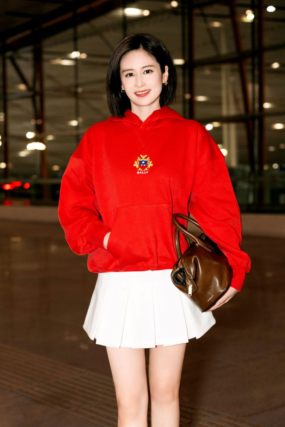 演员颖儿穿着 Bally 2024 秋冬女士刺绣徽章标识连帽卫衣和 Faster 运动鞋,配以 Belle 皮革手袋和棕色棒球帽启程米兰,精致休闲交融一体,映现时髦主张。