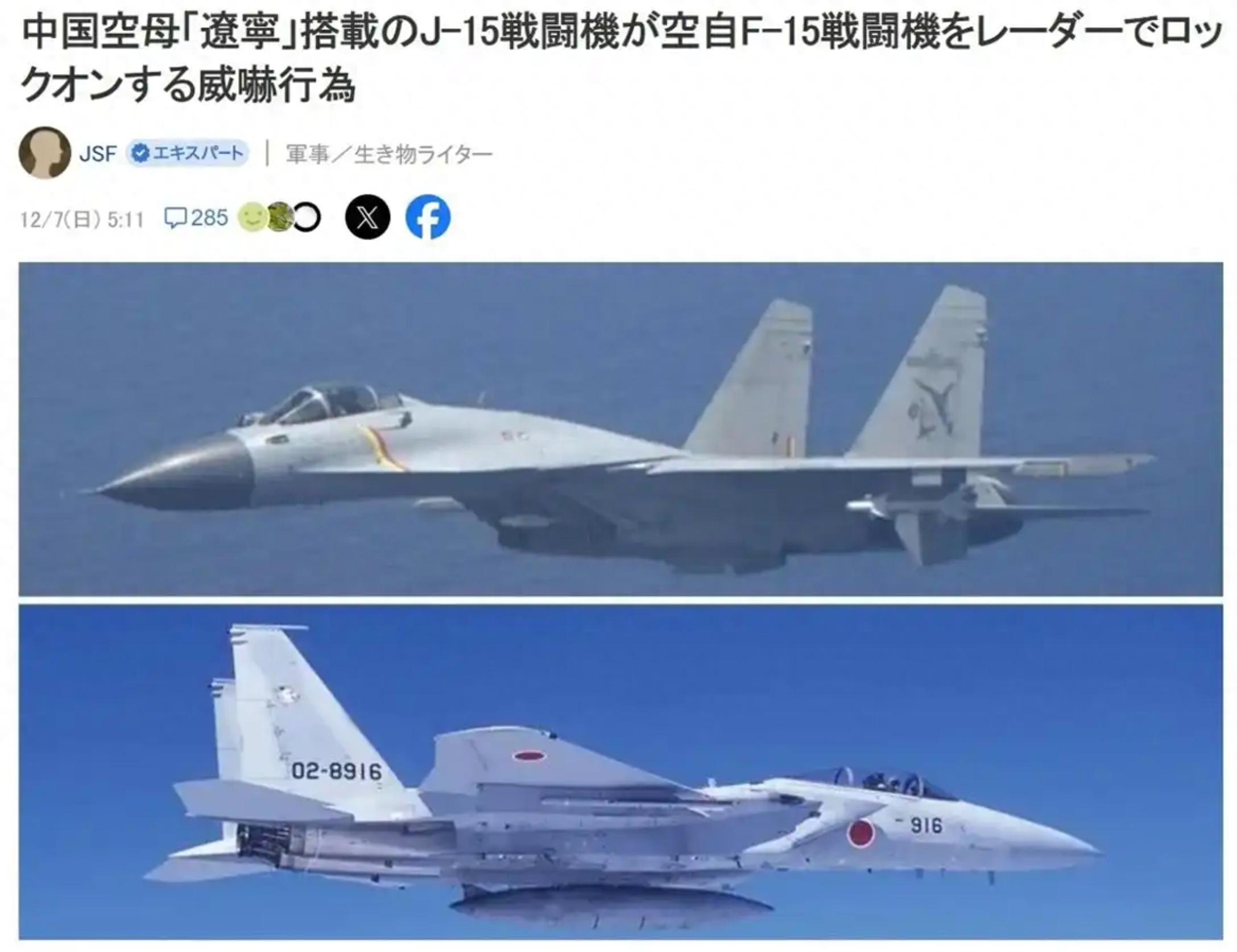 很多人都知道,在2025年12月6日时,辽宁舰穿越宫古海峡期间,日本曾派出F15J战机,对中国海军舰队实施监视,期间日方还声称F15J遭到了中国海军歼15舰载机的两次雷达警告照射。