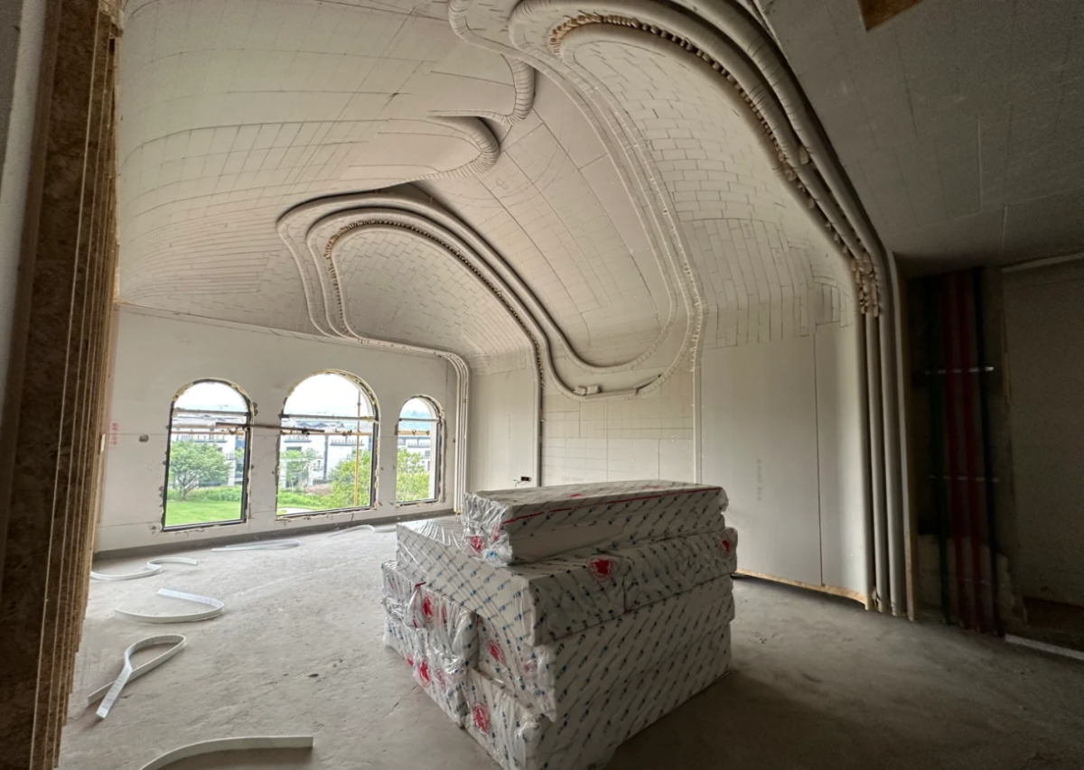 回型顶:隐藏式设备收纳在天花板四周设计双层吊顶,形成“回”字结构,既能遮蔽中央空调、新风系统等设备,又能通过灯光设计增强空间纵深感。