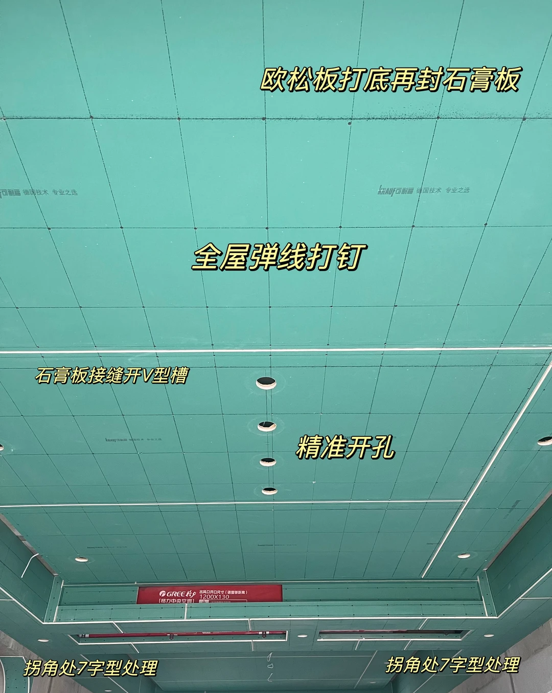 安装工艺影响平整度铝扣板拼缝处理需精细,否则易影响整体美观;石膏板接缝处应先用防开裂剂填缝,再粘贴牛皮纸或的确良布,防止热胀冷缩导致开裂。