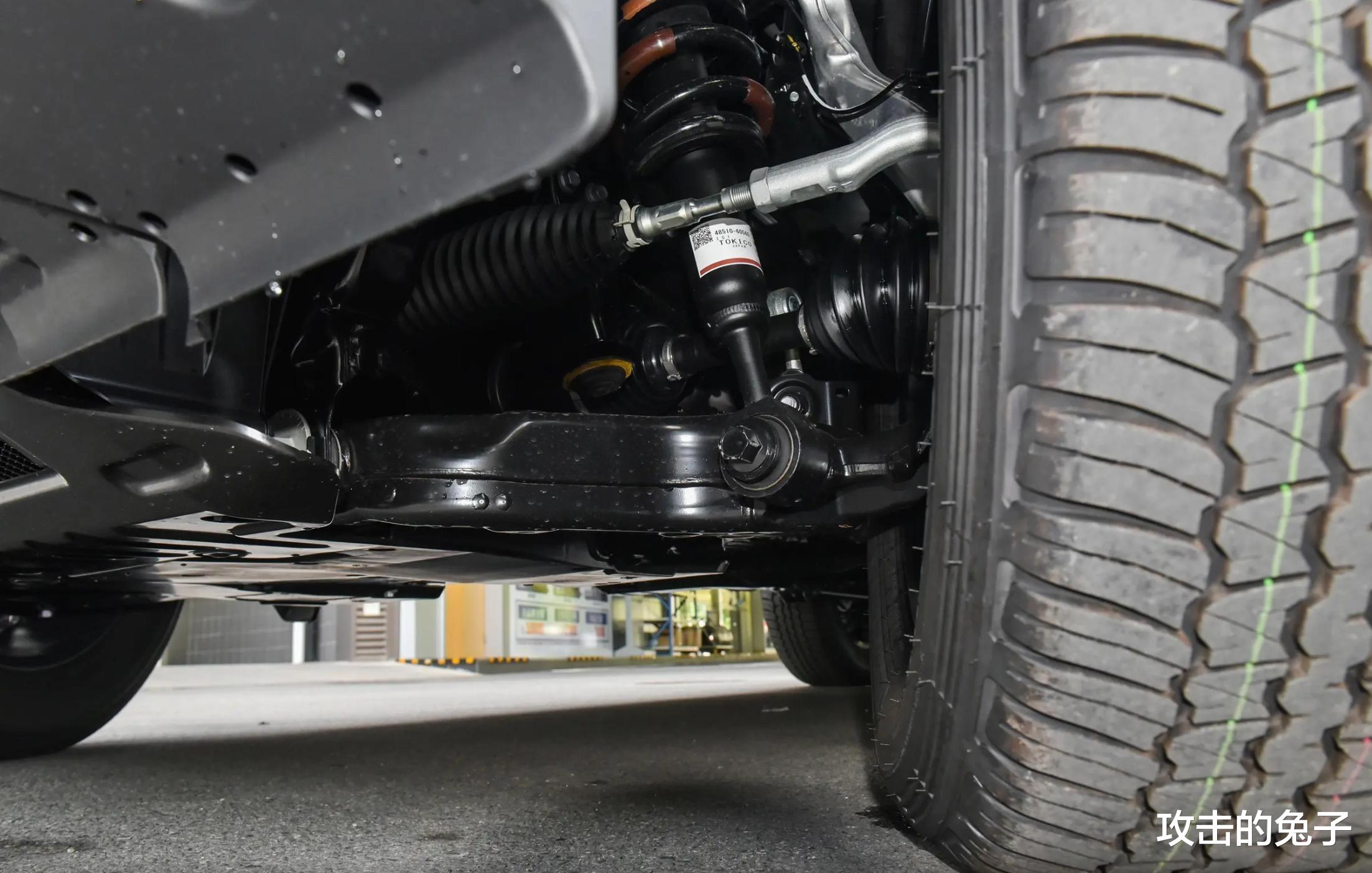 当然,作为一台硬派越野车,底盘和悬架才是真正的灵魂。新款普拉多采用了前双叉横臂螺旋弹簧式独立悬架和后整体桥四连杆螺旋弹簧非独立悬架的组合,在保证舒适性的同时,也兼顾了越野性能。