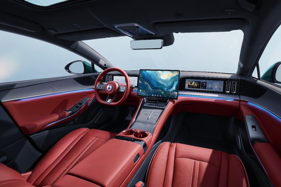 颜值也完全在线,新增了晶澜灰、峡湾绿、极光紫三种颜色,尤其是峡湾绿,看着静谧又干净,越看越有质感,好评拉满。内饰也很有格调,熔岩红配色特别有激情,还有穿雾灰、踏雪白可选,运动座椅、运动方向盘全都有,副驾零重力座椅、AR-HUD这些豪华配置也没落下,绝对是新能源豪华价值标杆。