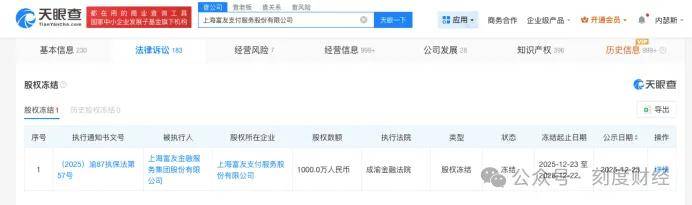2025年12月爆发的股权冻结事件,为富友支付的上市之路再蒙上一层阴影。此次冻结的股权权益数额达1000万元,引发了市场对公司股权稳定性及控制权风险的担忧。