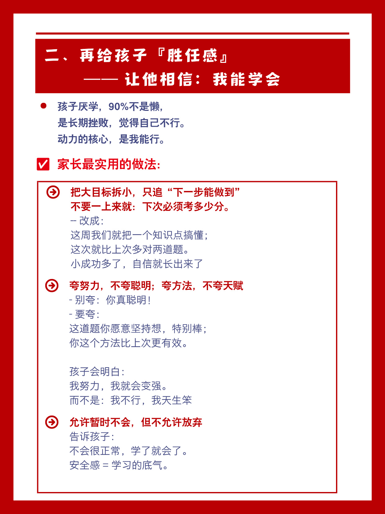 二、再给孩子『胜任感』——让他相信:我能学会孩子厌学,90%不是懒,
