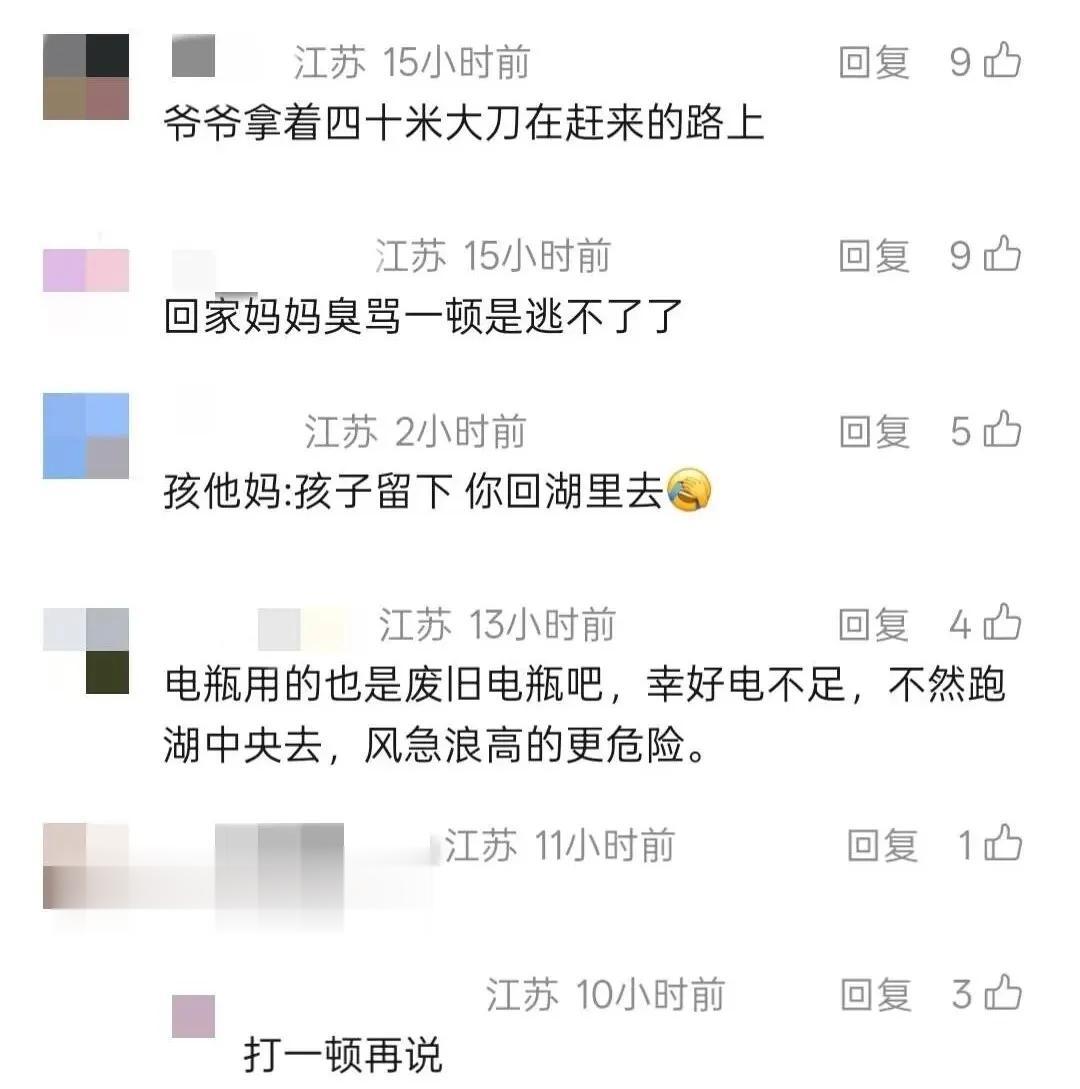 他带着儿子和“自制艇”