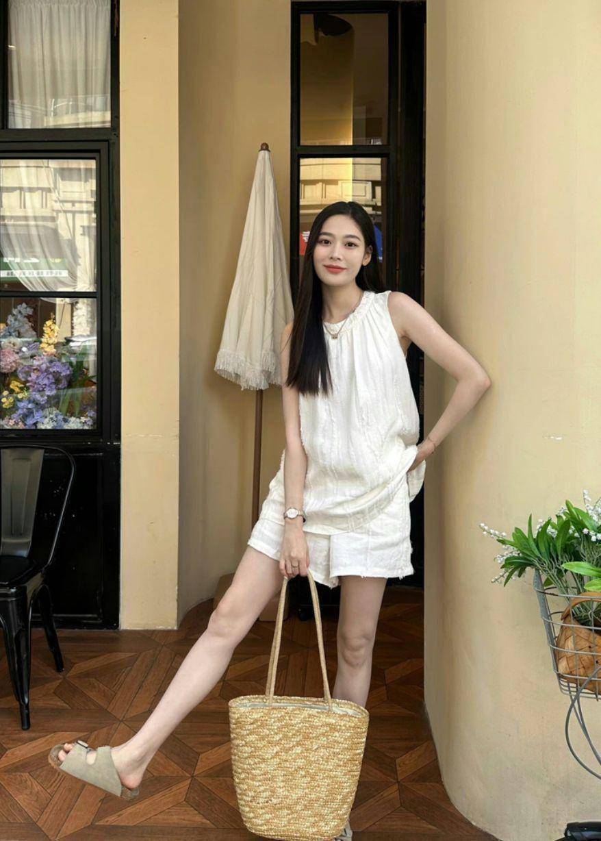 亚麻套装也是夏日降温的必备首选!白色的圆领无袖上衣和白色短裤的搭配,只需要凭借亚麻材质,就能体现出高级感,同时慵懒随性之美。