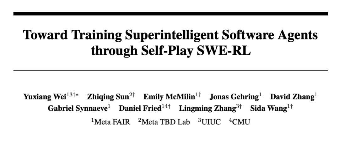为此,来自 Meta FAIR 和 Meta TBD 实验室的的一项全新研究工作,打破了这一关键瓶颈,提出了 SSR(自对弈 SWE-RL),旨在通过使软件代理能够自主生成学习经验,从而摆脱人类数据的限制。