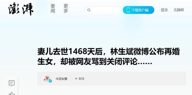 澎湃新闻(妻儿去世1468天后,林生斌微博公布再婚生女,却被网友骂到关闭评论…… 2021.07.01)