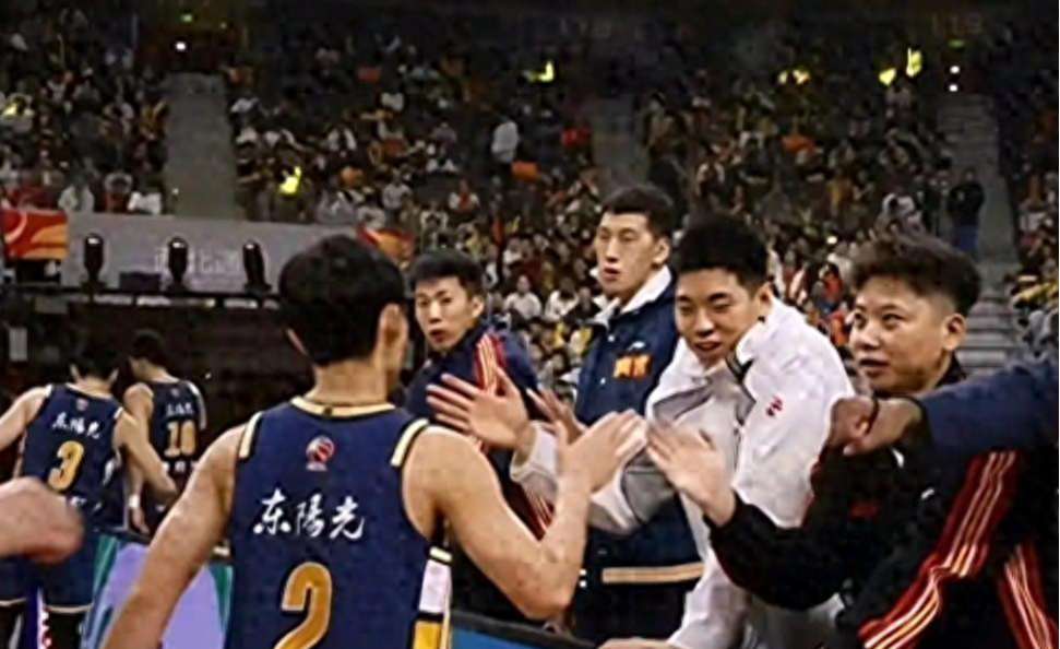 胡明轩在篮下空篮不进,马上被徐杰换下;徐杰也好不了哪里去,全场4投0中。