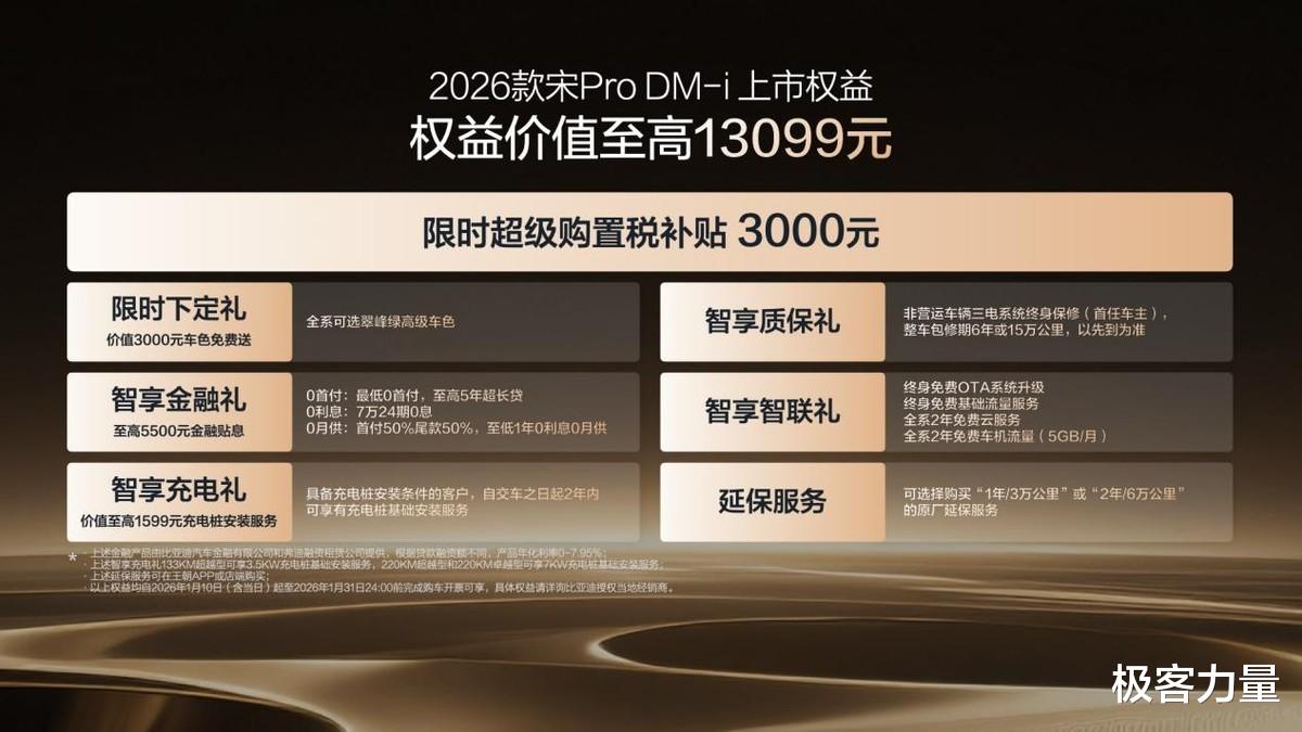 2026年1月10日,比亚迪正式宣布2026款宋Pro DM-i上新220km长续航版本,全系限时超级优享价9.98-12.78万元。